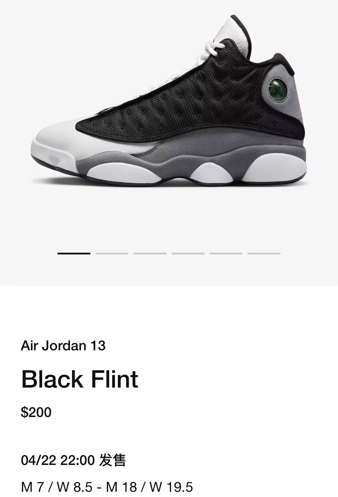 目前,全新 Air Jordan 13 “Black Flint” 将于 4 月 22 日在美区 SNKRS APP 登场。