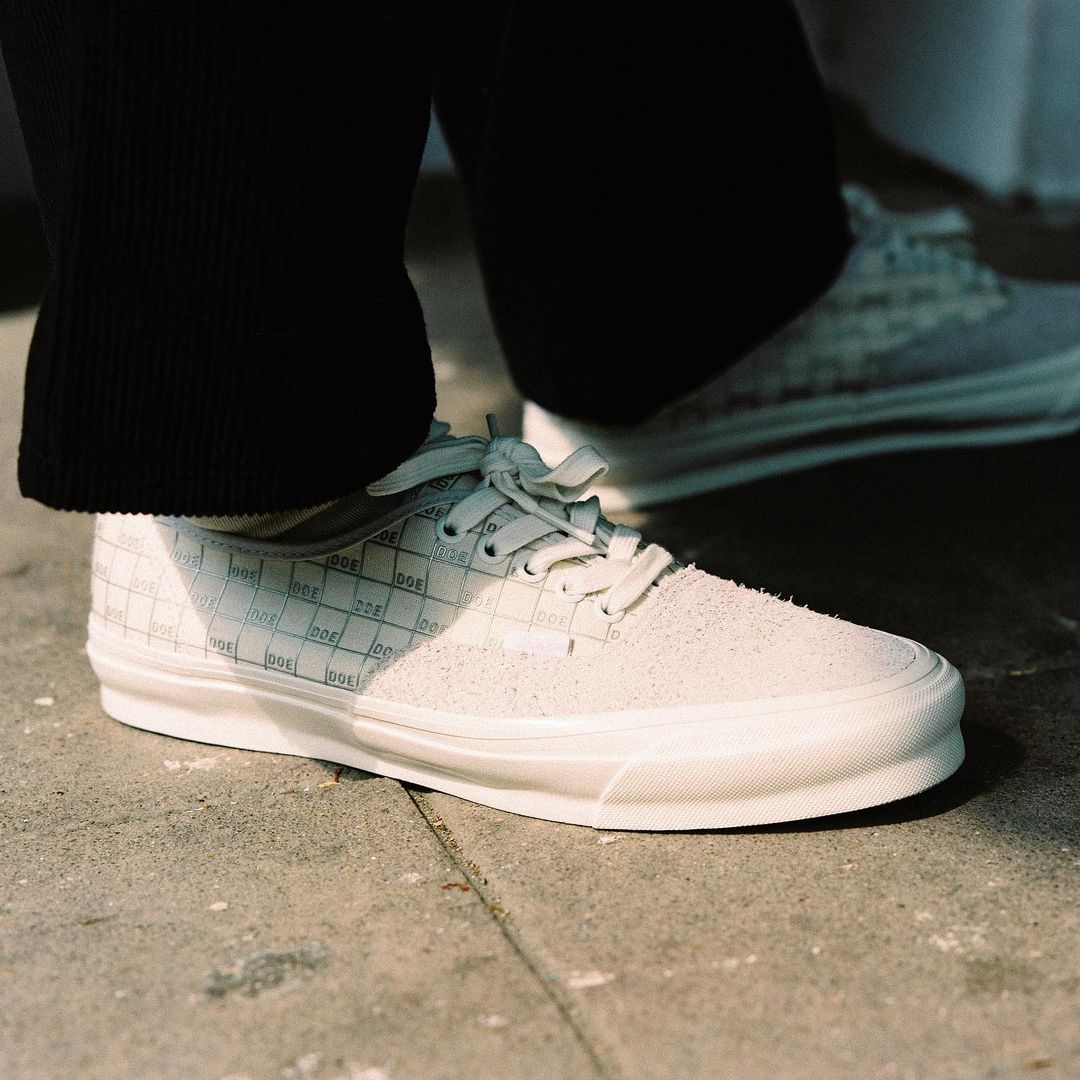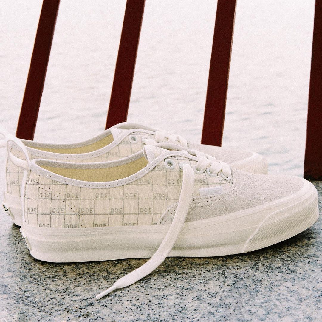 第一双 OG Authentic LX 鞋款采用了厚帆布和翻毛皮搭配打造,设计灵感来源于艺术家卡西米尔·赛文洛维奇·马列维奇的代表作《白上白》,用两种材质不同的白色呈现,配合 DOE Logo 布满鞋身,艺术感十足。