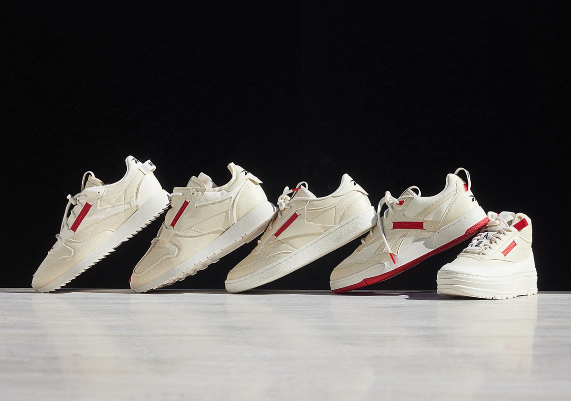 设计灵感来源于 Milk Makeup 设备间内的专用工作服,采用乳白色覆盖鞋身,并以红色点缀细节,视觉效果十分素雅。