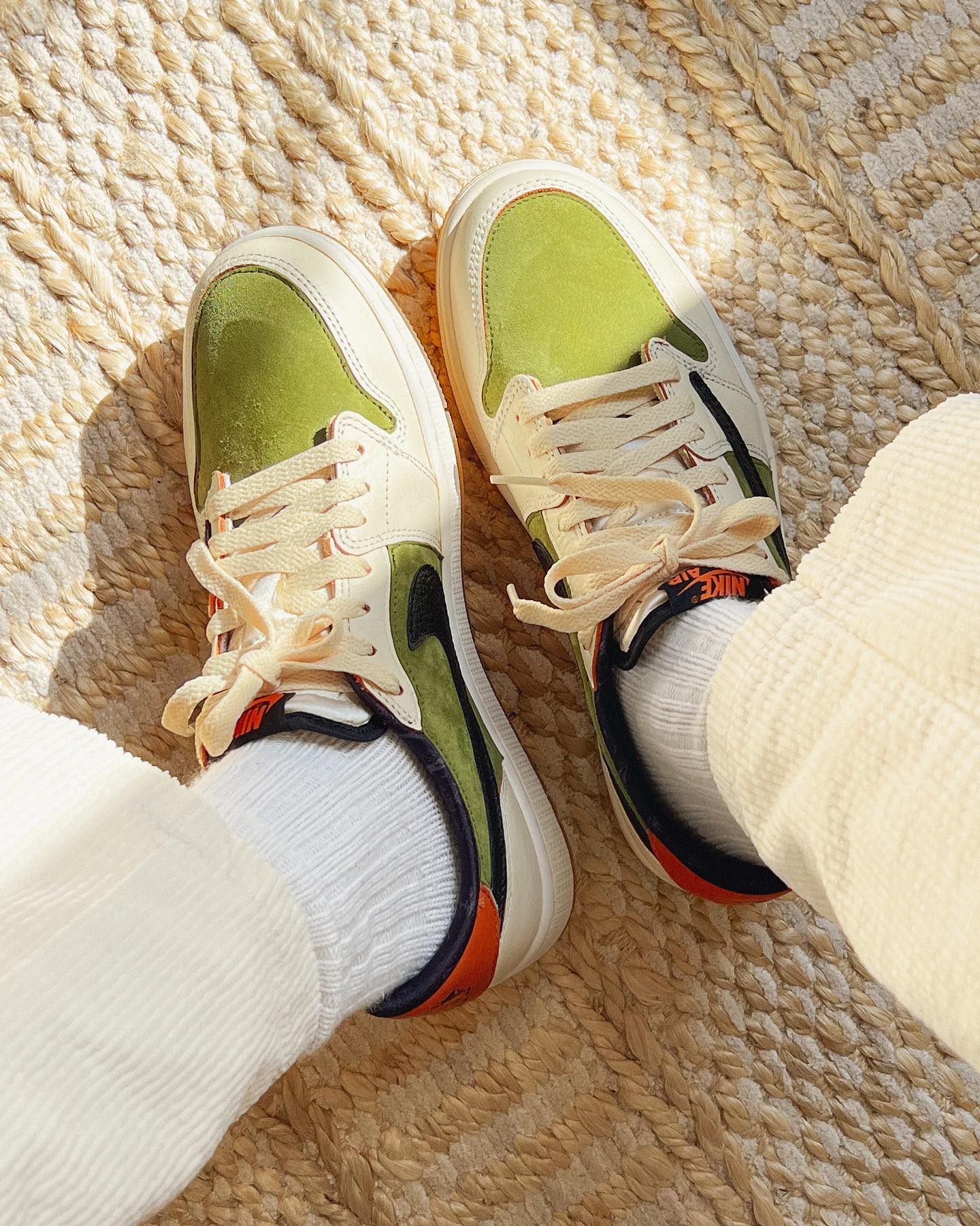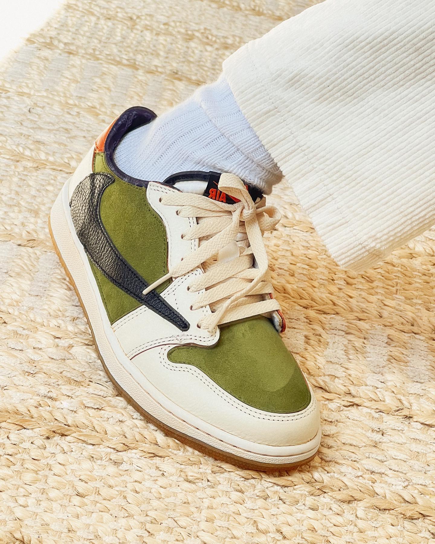 最后做旧中底搭配橄榄绿外底收尾,完善整双鞋设计。