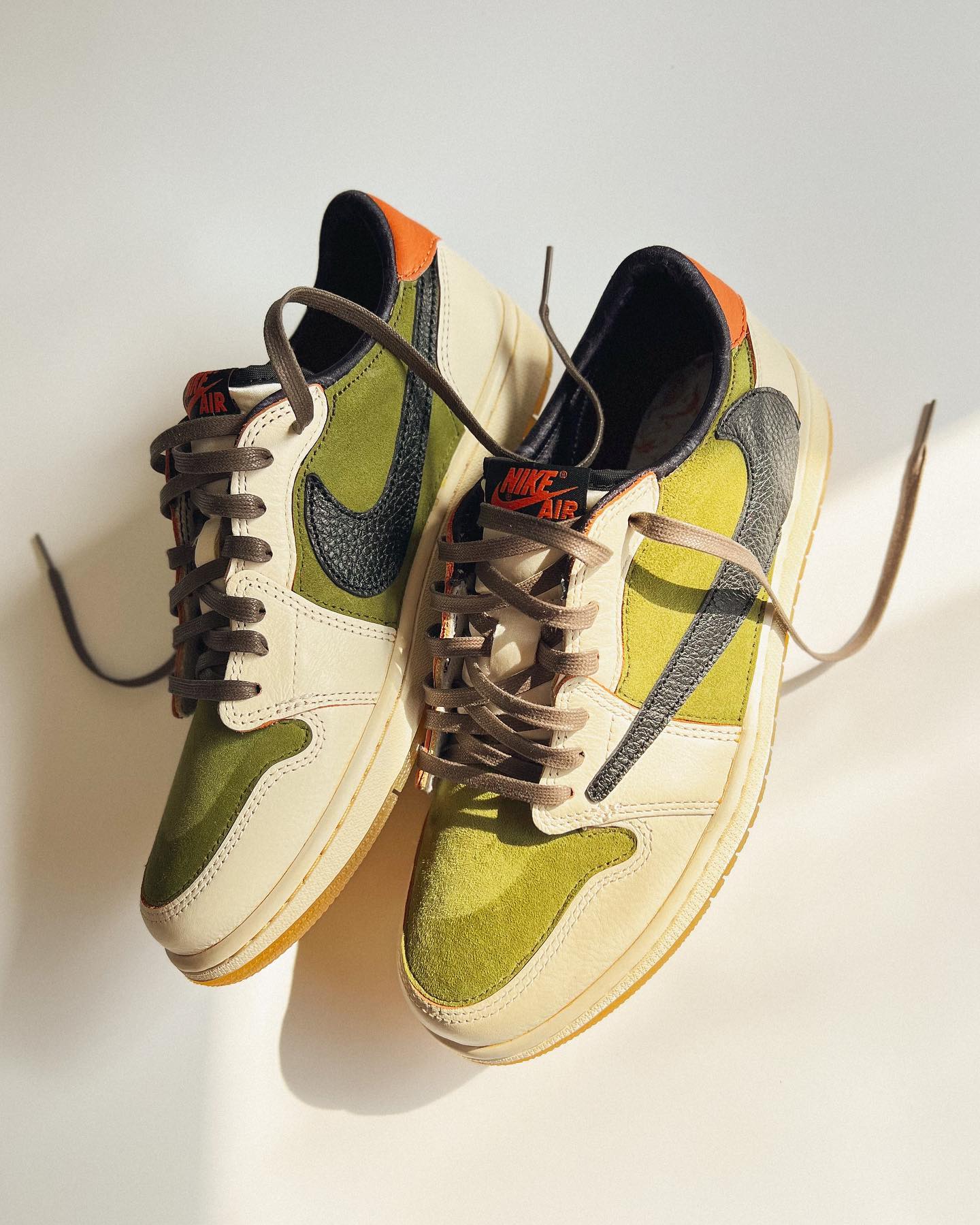 整双鞋采用橄榄绿和白色为主色,黑色点缀,呈现出「反转倒钩」的视觉效果。