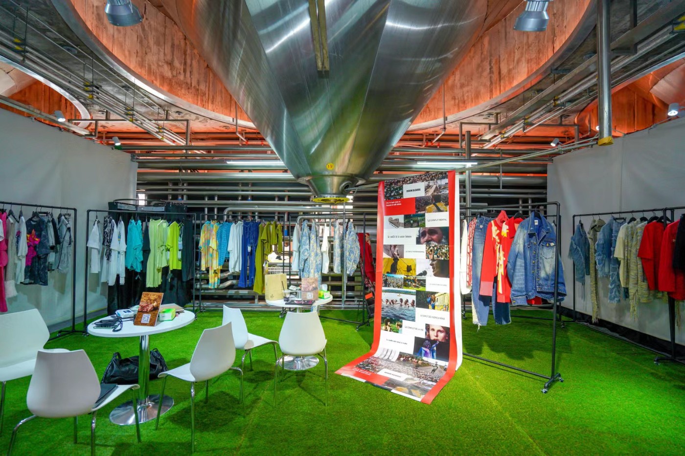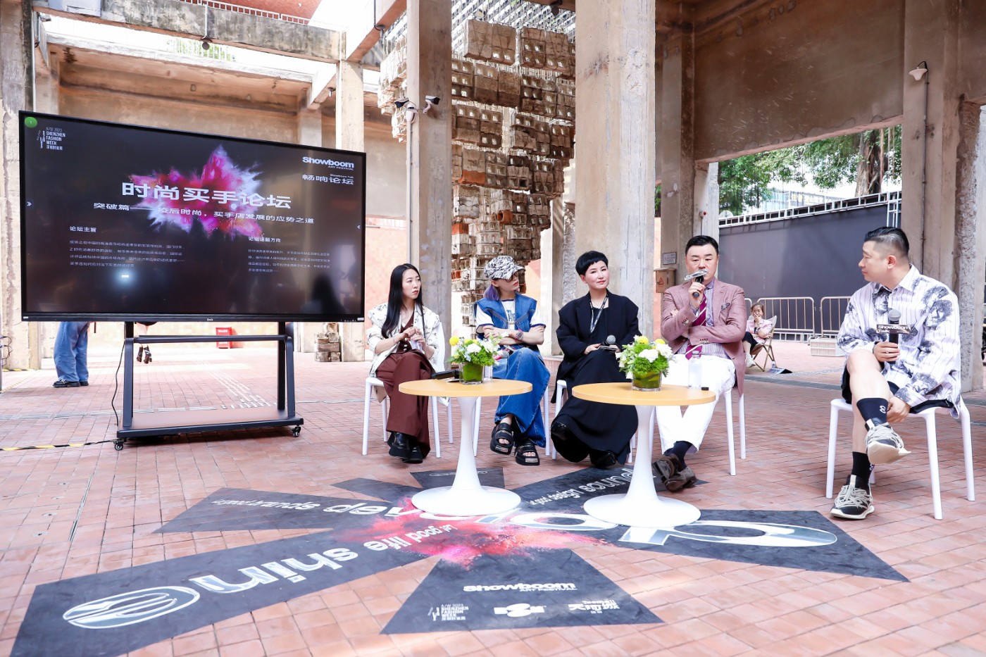此次展会特色之一是露天畅响论坛,被各种艺术作品环绕,展现了一场视觉与听觉的盛宴。另外,Showboom 还展示了 31 个设计师的作品,这些设计师来自不同品牌,包括近年异军突起的设计师品牌如 TGP、y2 monair、ChinChin、inwhat、wrong 等,以及具有国际属性的密扇 MUKZIN 和 MTG 等品牌。