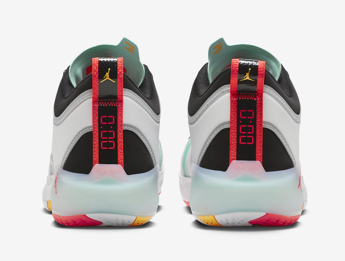 细节方面,除了鞋舌上的银色 Jumpman Logo 和代表郭艾伦的「G」之外,在鞋后跟处也有着「0:00」字样,进一步诠释特殊配色身份。