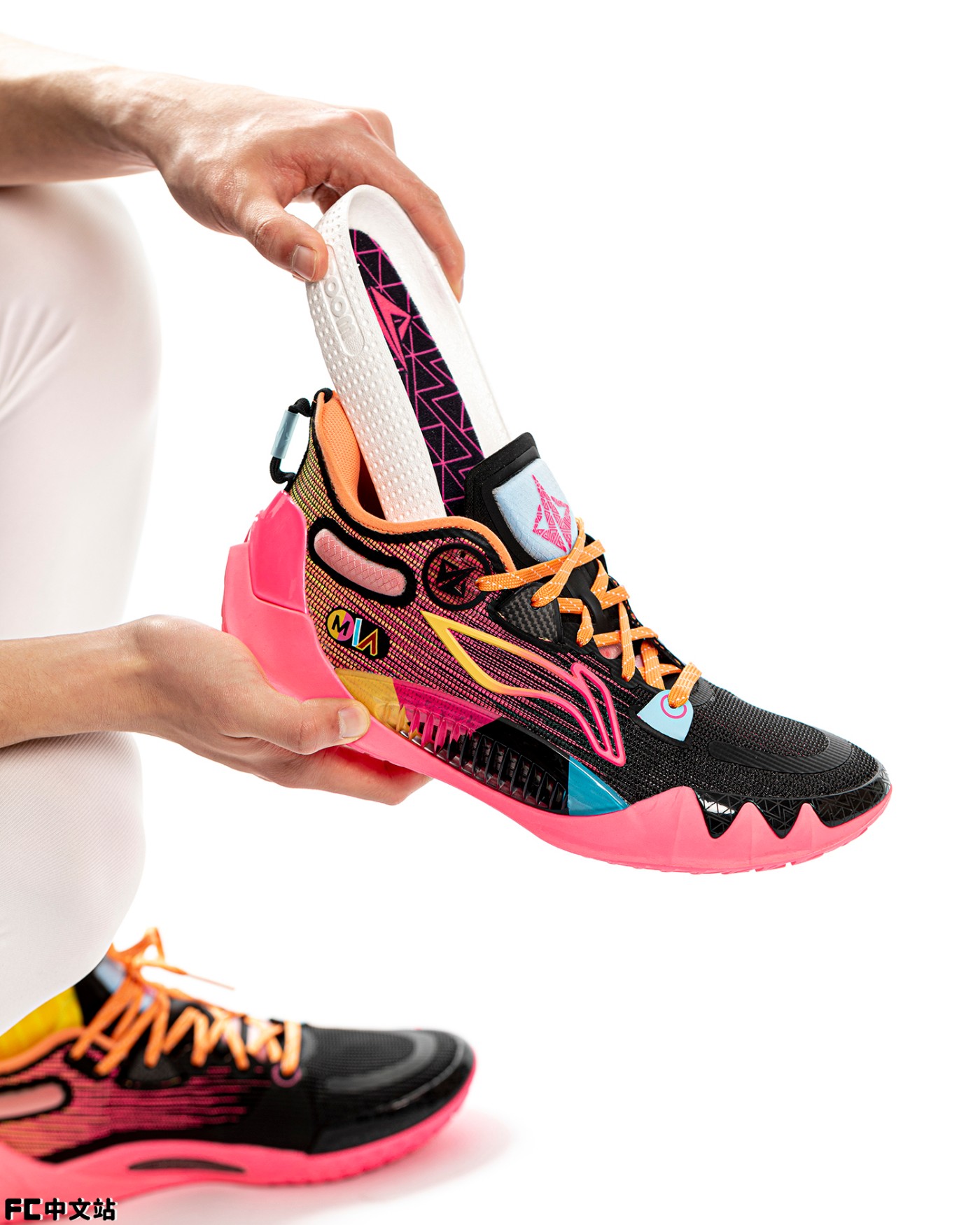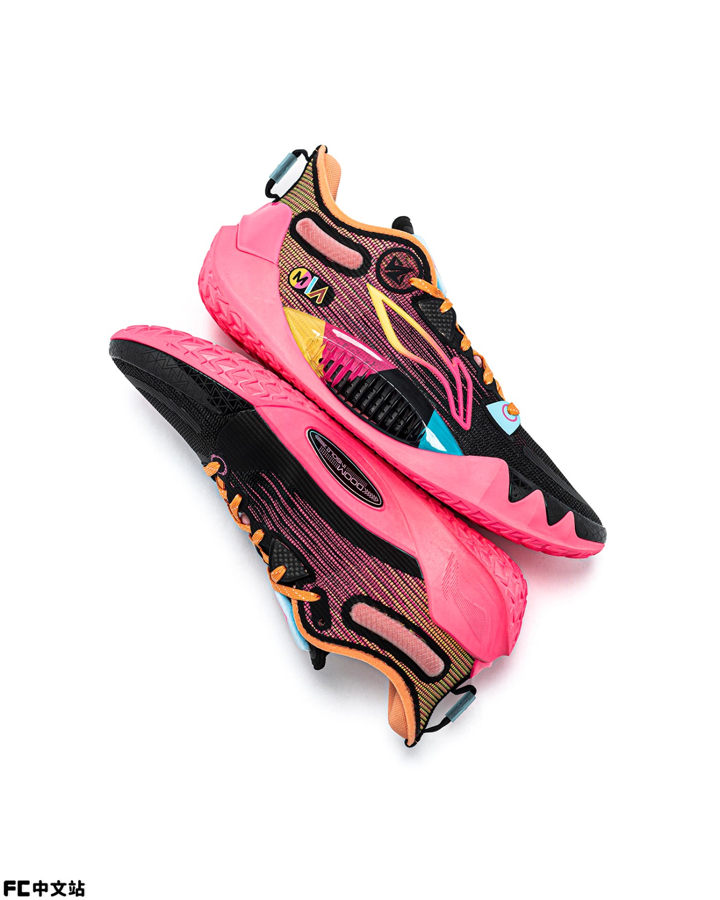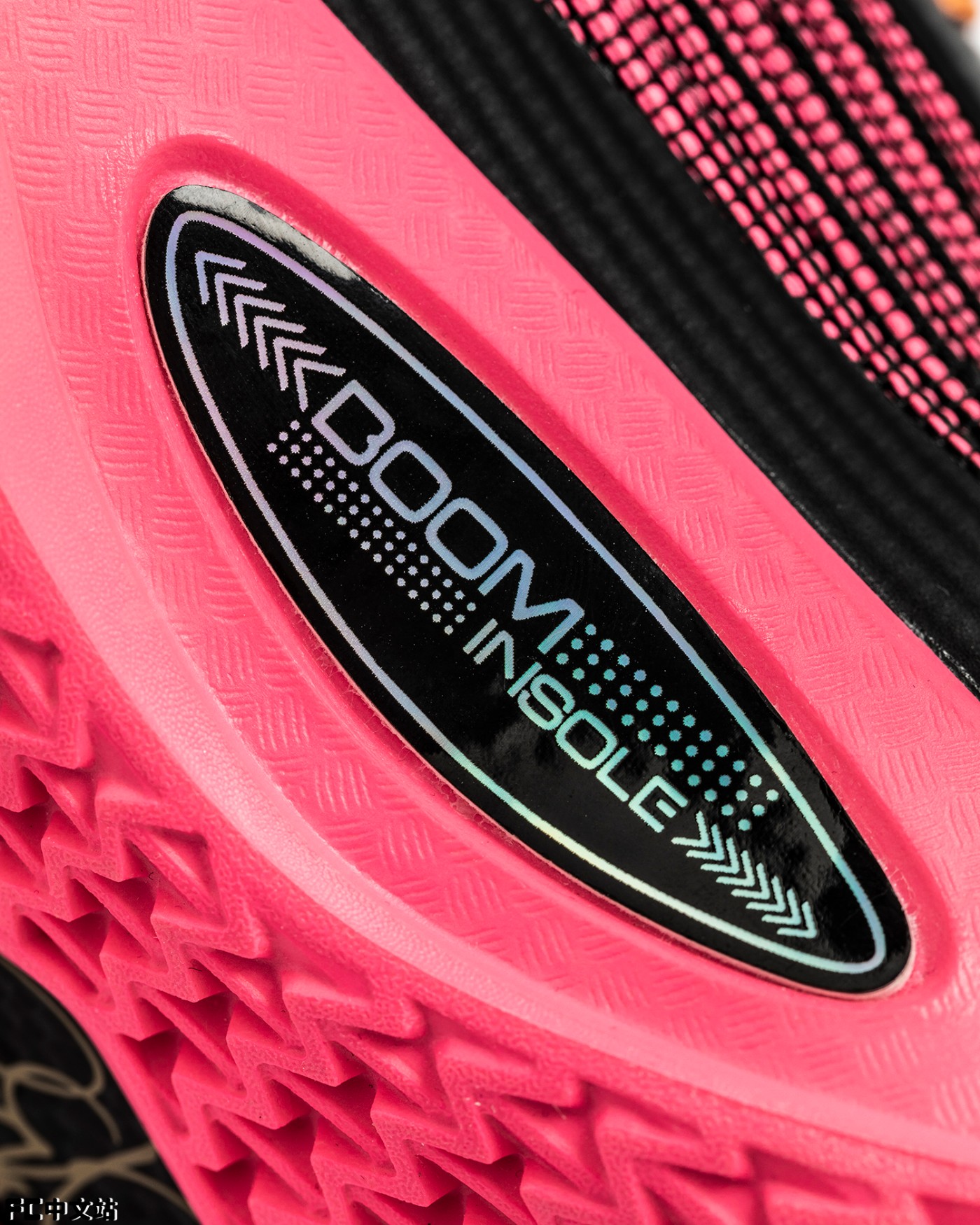 鞋身采用黑粉过渡示人,渐变色调的李宁 Logo 点缀。