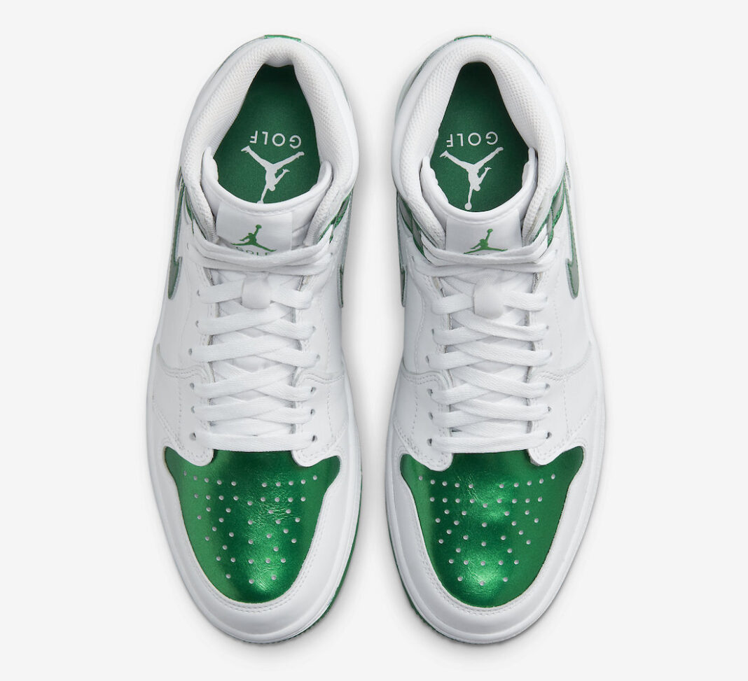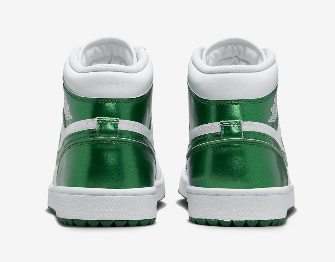 最后白色中底搭配绿色外底收尾,其中因为是 GOLF 鞋型相较于常规版的 AJ1 的鞋底更加防滑。