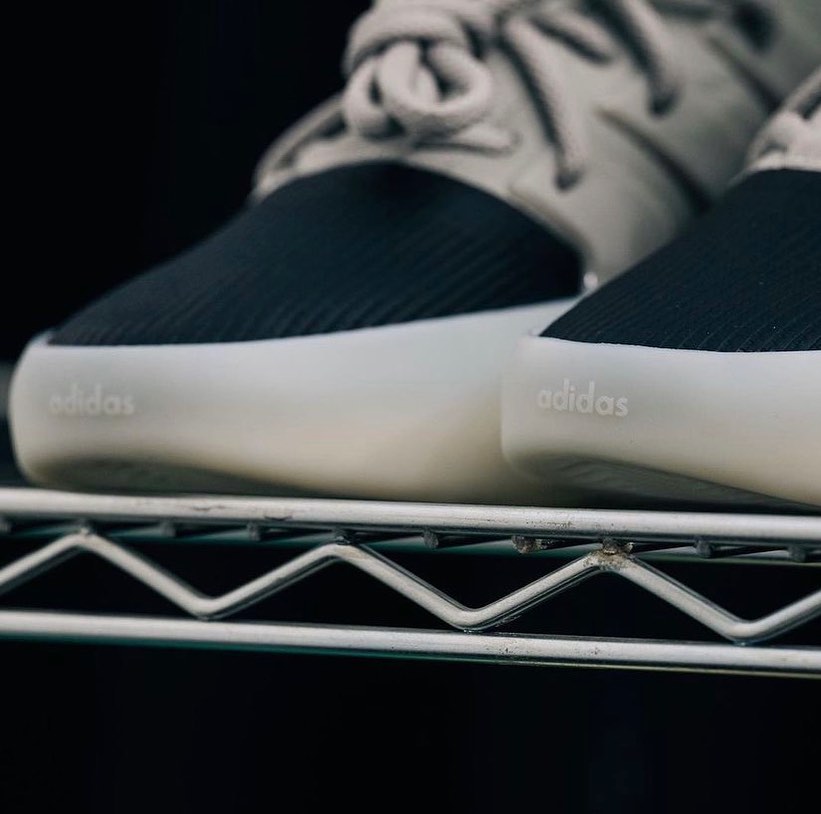 后跟位置分别压印 Fear of God、三叶草 Logo,联名身份一览无余。
