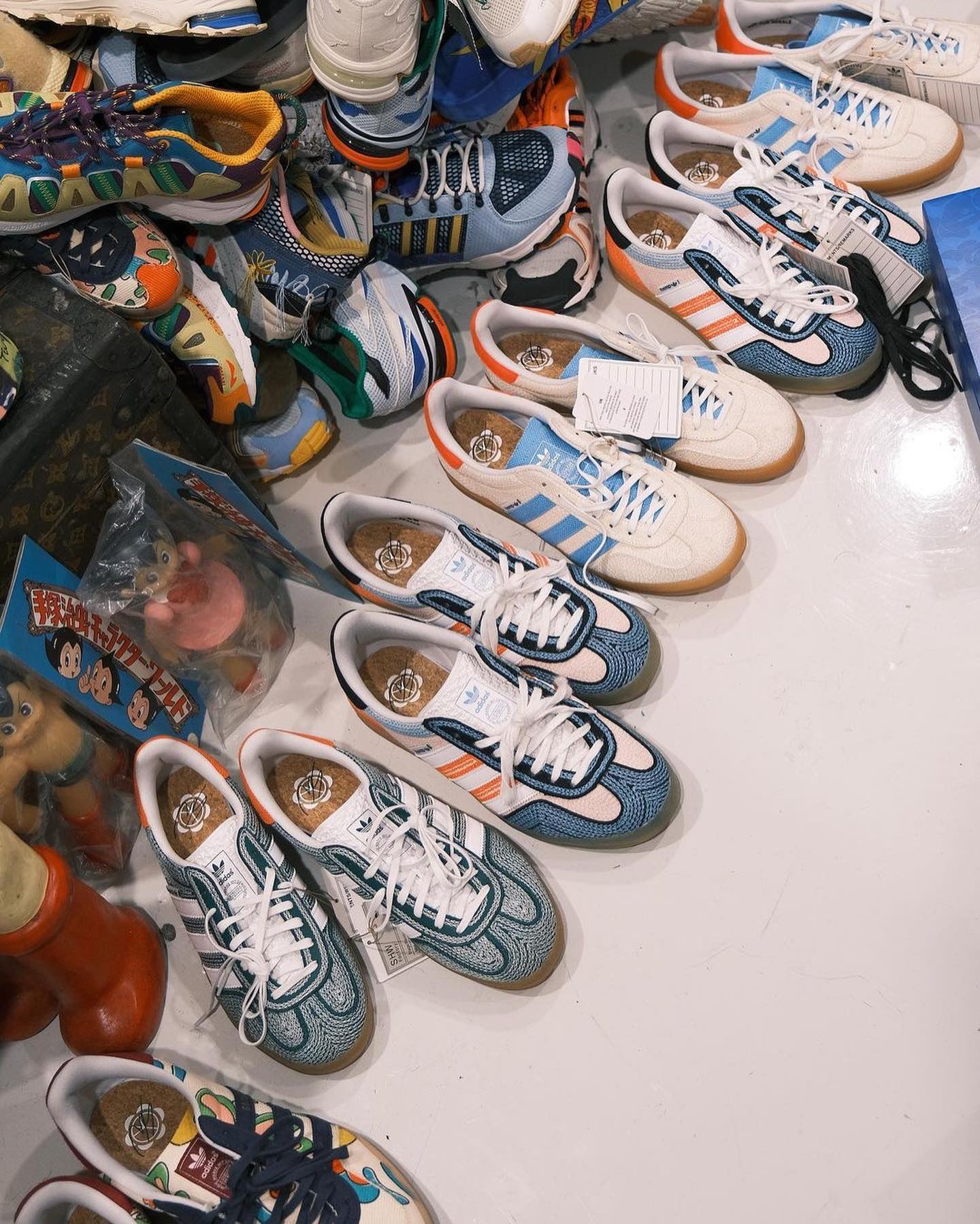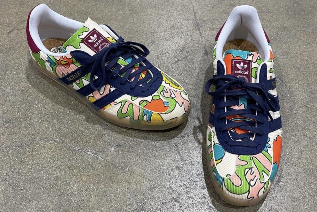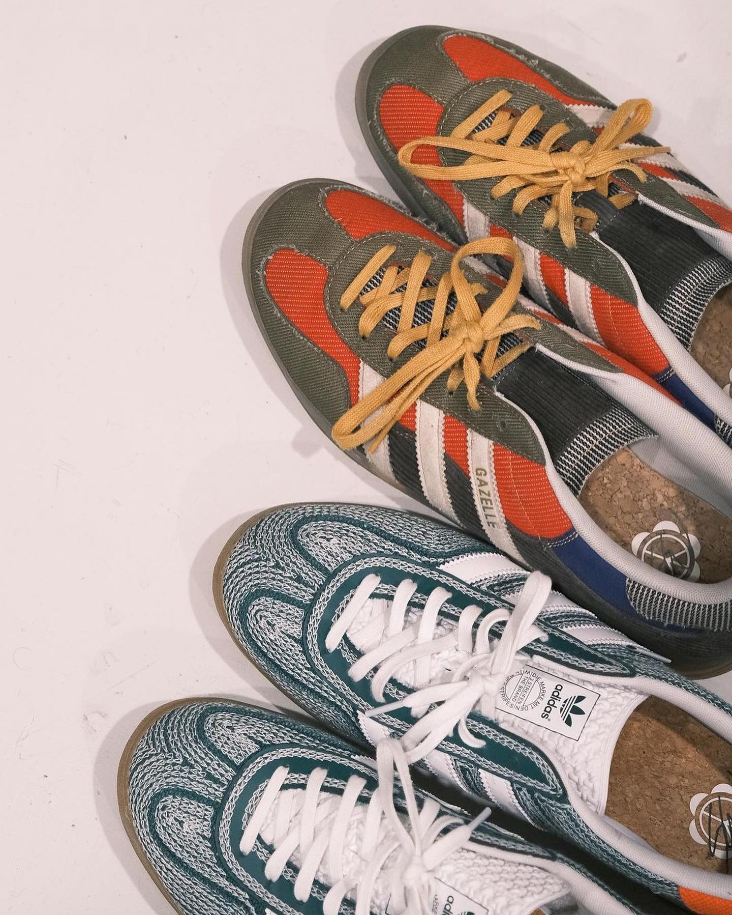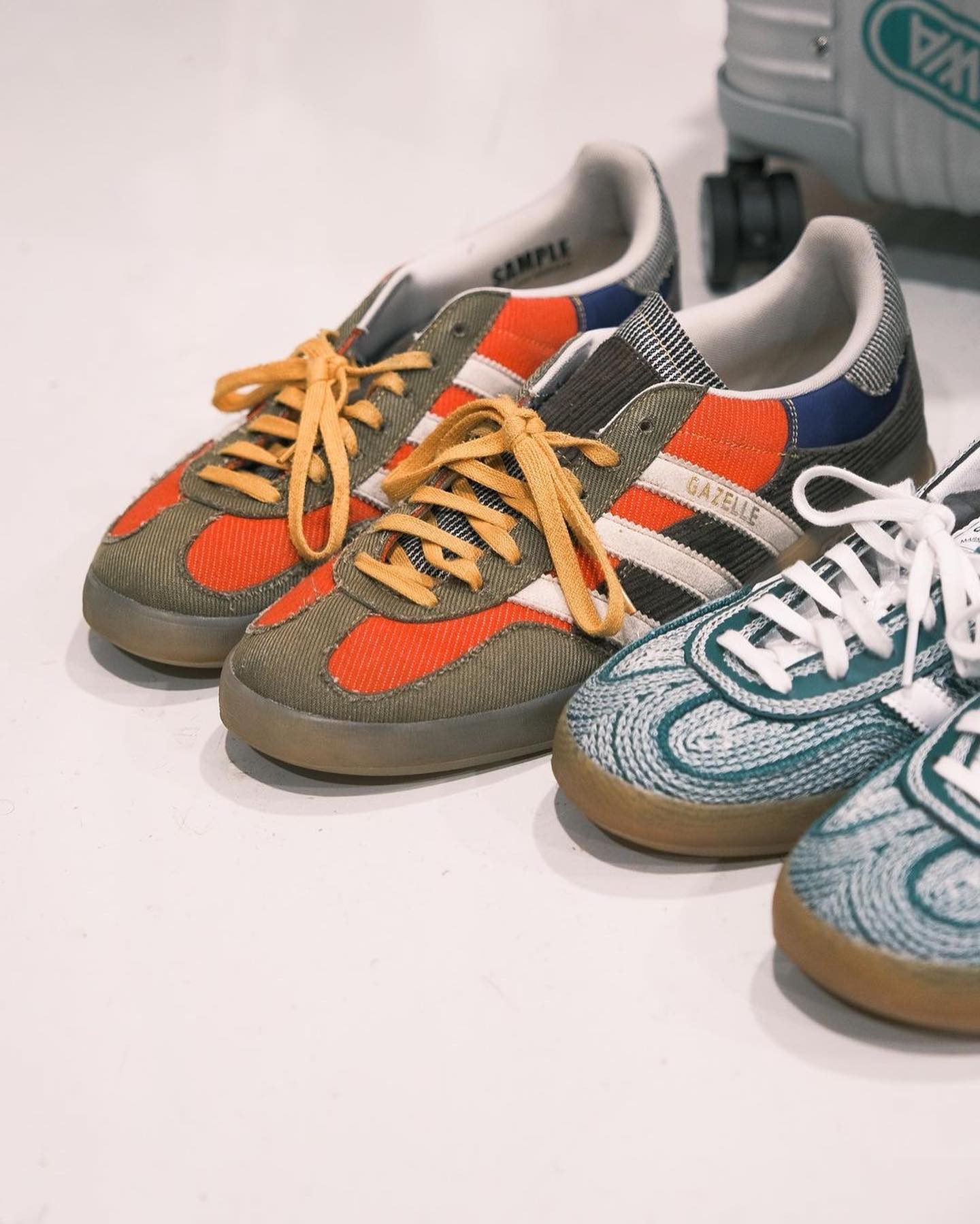 可以看到,这几双鞋均以 adidas Originals 经典的 Gazelle 鞋型为蓝本设计,采用经典灯芯绒鞋面设计,鞋面覆盖不同的图案和设计,打造出了丰富多彩的层次感。