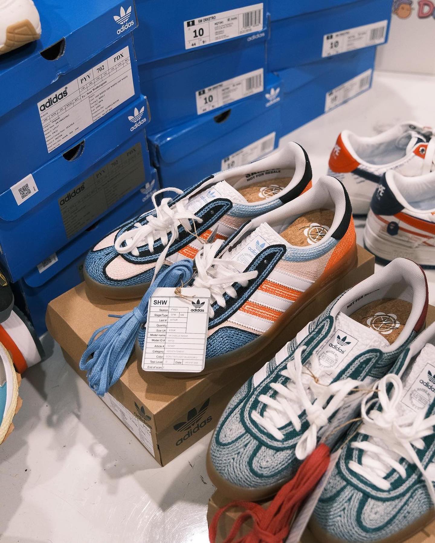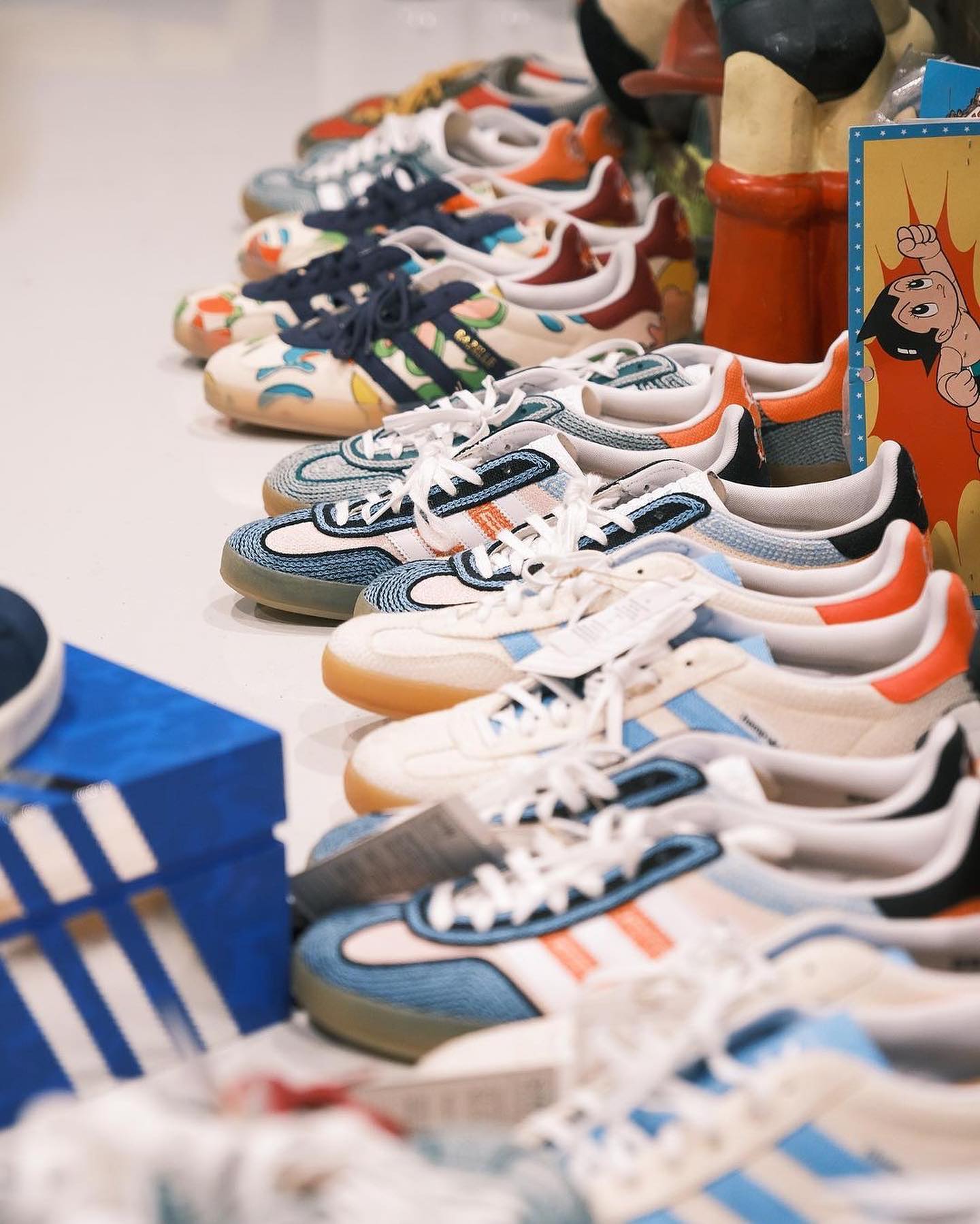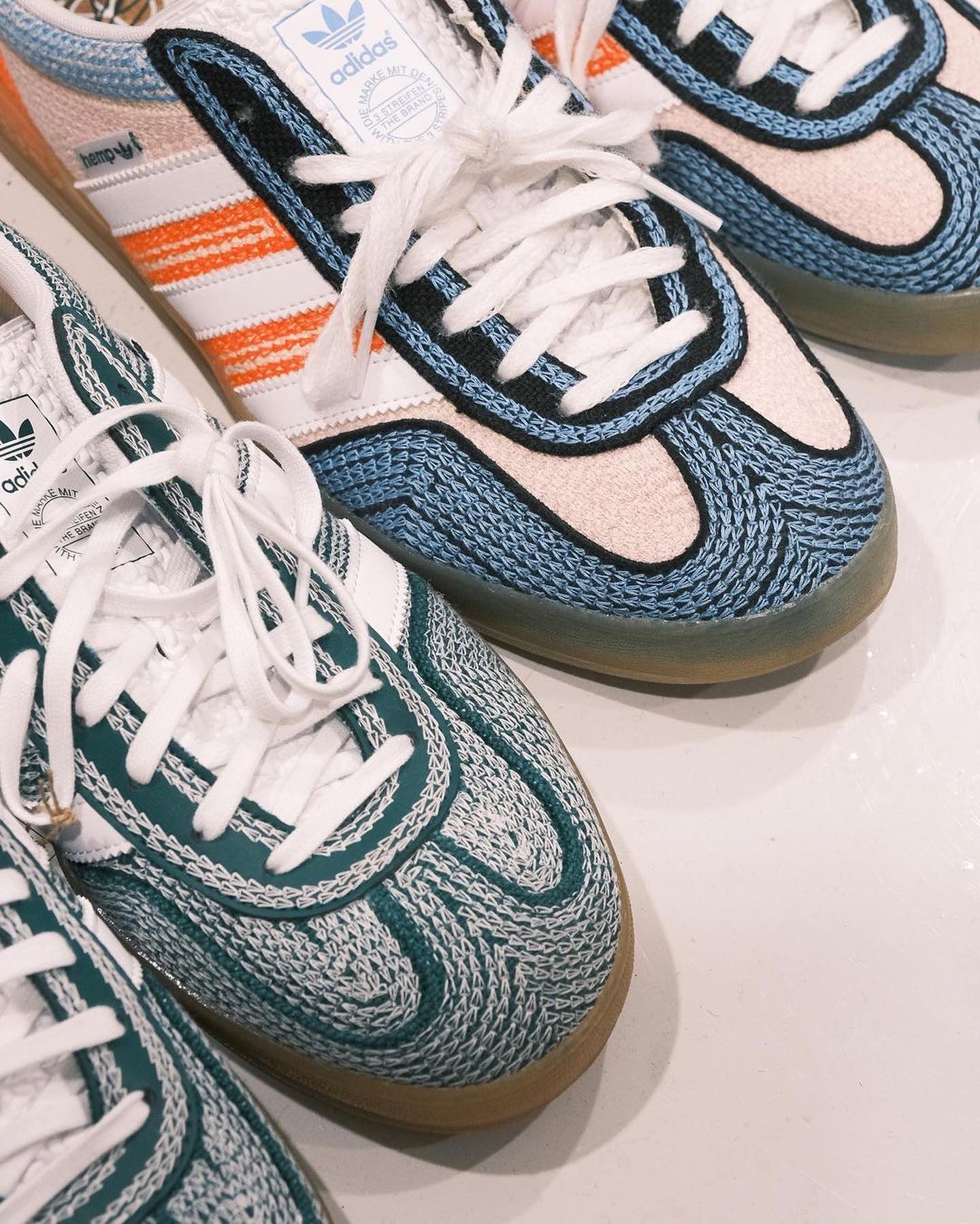 可以看到,这几双鞋均以 adidas Originals 经典的 Gazelle 鞋型为蓝本设计,采用经典灯芯绒鞋面设计,鞋面覆盖不同的图案和设计,打造出了丰富多彩的层次感。