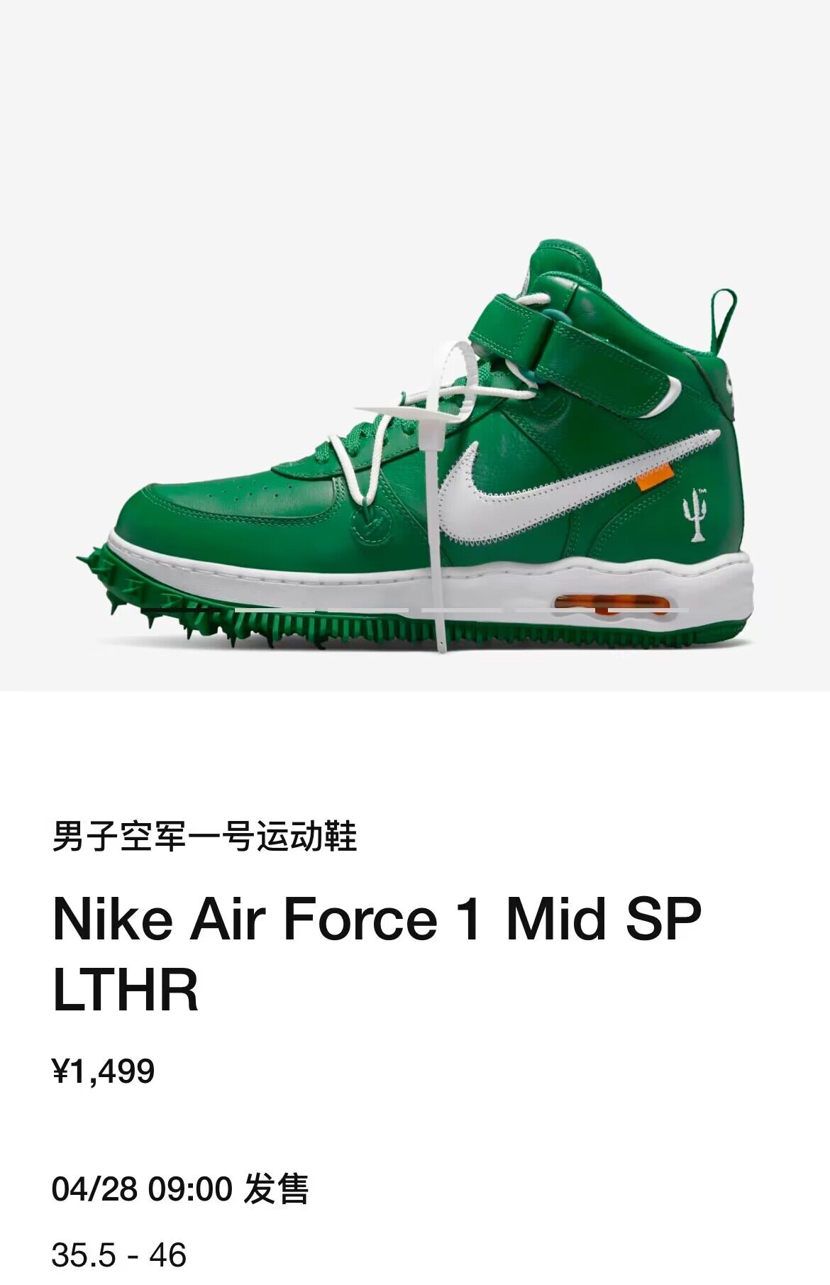 近日,大家期待已久的绿色 OFF-WHITE x Nike Air Force 1 Mid 终于来了。