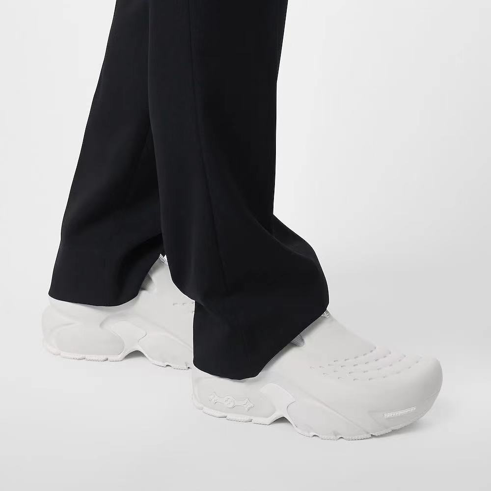 值得一提的是,除了鞋头部分,整个鞋身都有大量镂空,想必透气性超强,乍一看和全新的 LV SHARK 还有点相似。