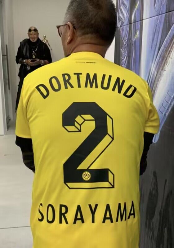 顺便提一下,空山基在采访时身穿的是德甲豪门多特蒙德的球衣,看来也是个球迷啊!