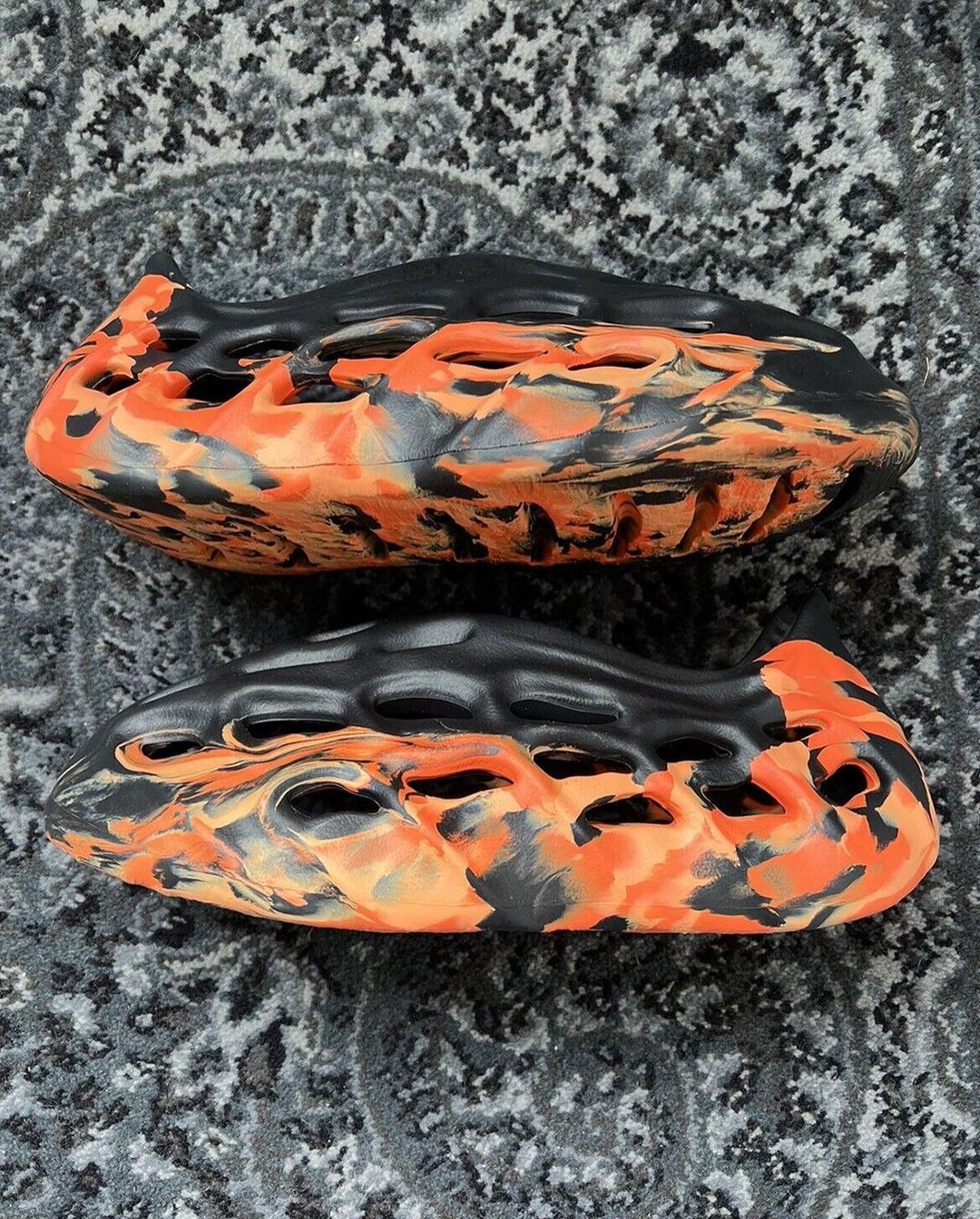 先来看被称之为 Yeezy Foam Runner 2 的鞋款,整体造型以黑色为主调,辅以类似于「火焰」的橘色细节,视觉效果格外醒目吸睛。