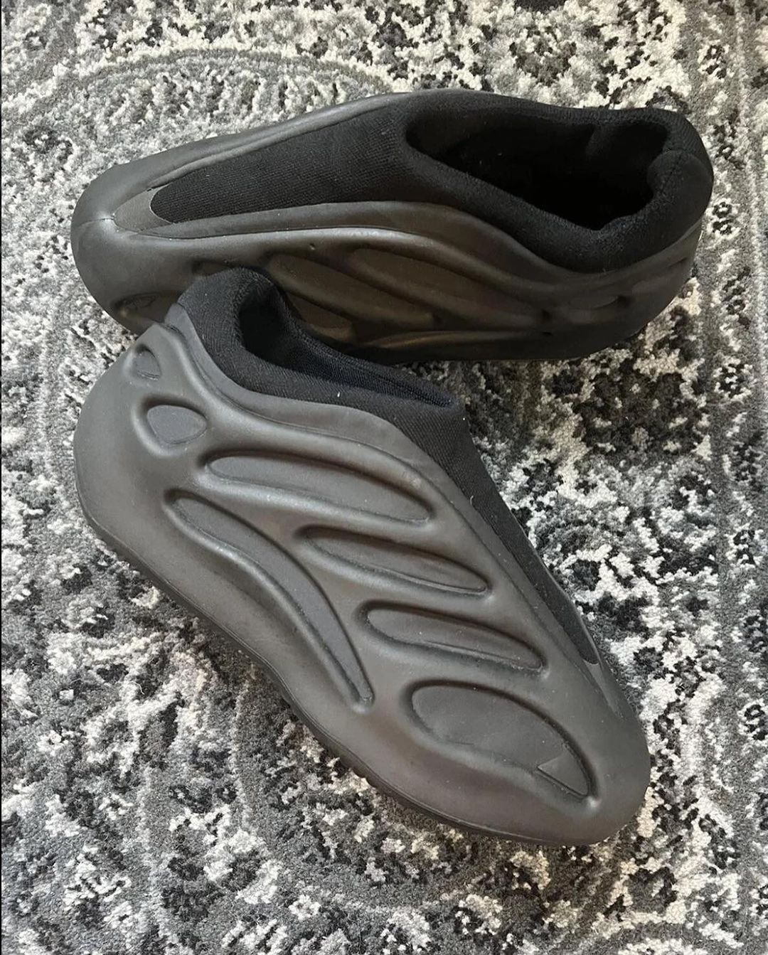 其次则是传闻中的 Yeezy 700 V4,通体黑色鞋身加上侧身多个凹陷设计将 Yeezy 700V3 的细节再度彰显,科幻气质十足。