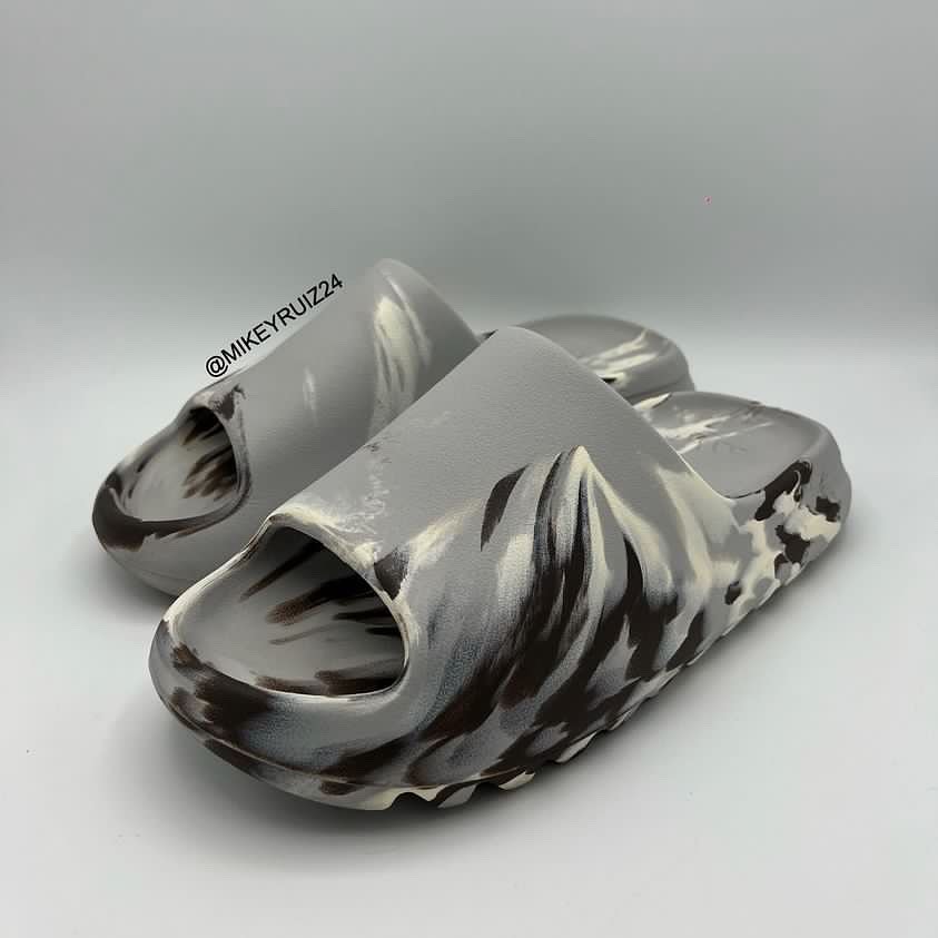 最后则是一双全新配色的 Yeezy Slide MX,低饱和的灰色鞋身,加上黑、白双色的涂鸦点缀,对比纯色而言小编认为彩色会更加喜人。