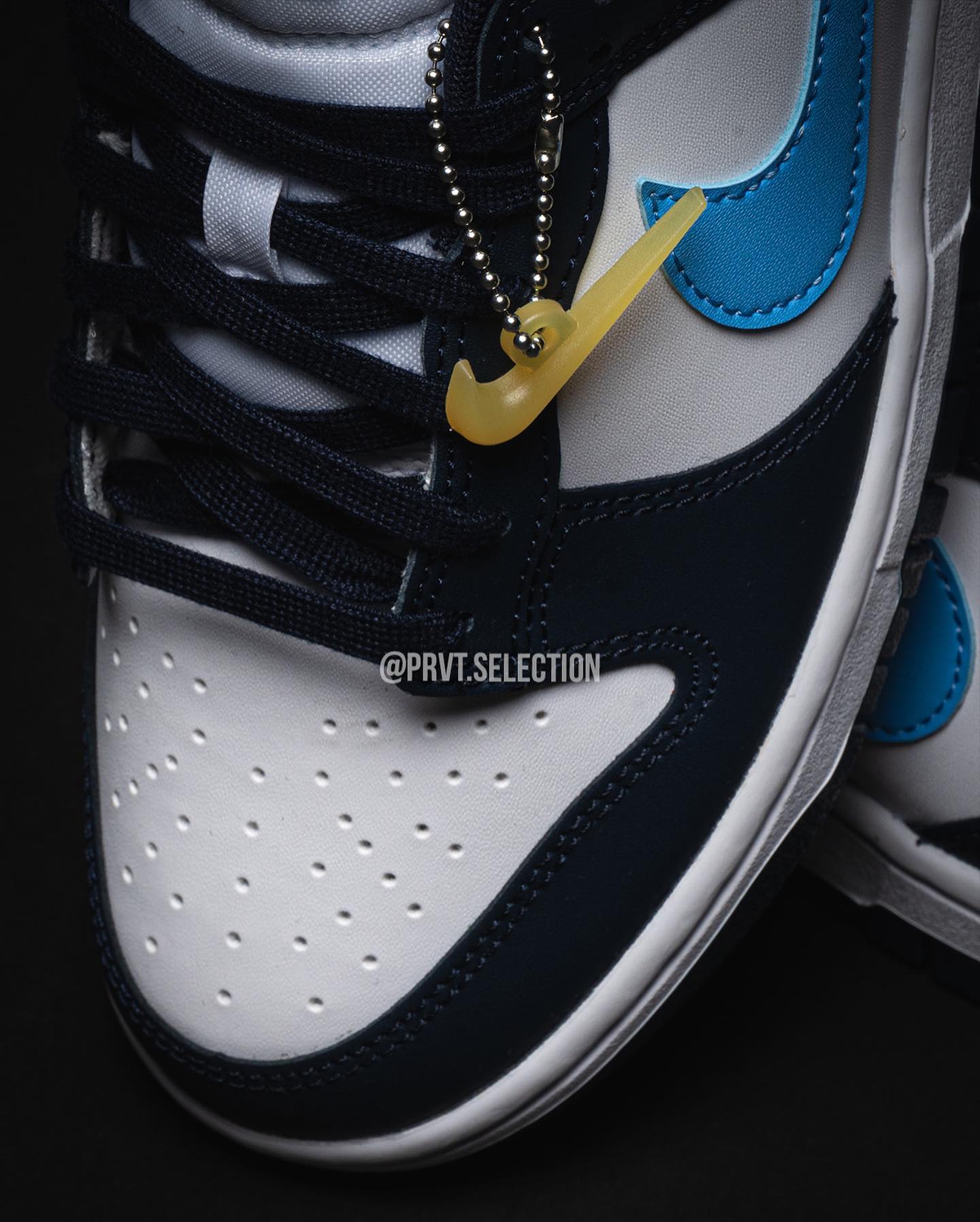 最独特的地方就是鞋带处带有黄色 Swoosh 吊坠,十分可爱。