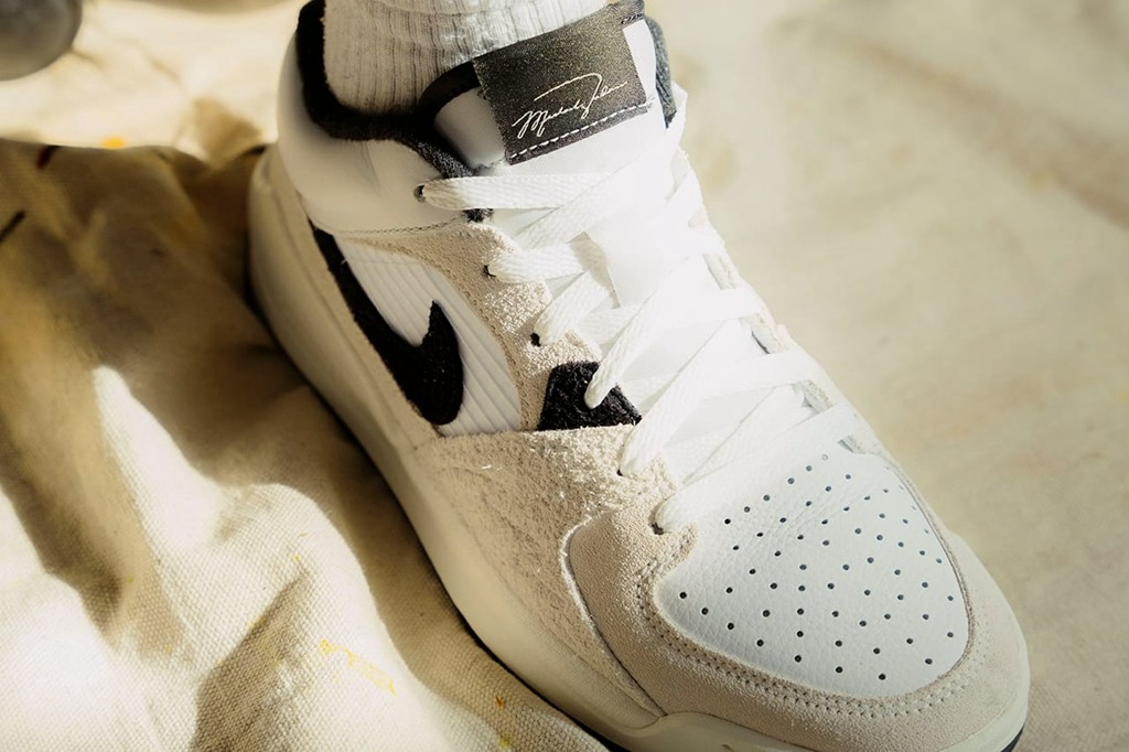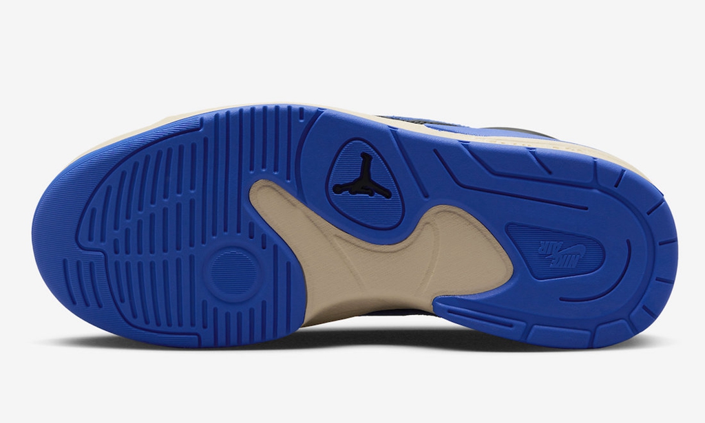 鞋身中部注入 Air Jordan 4 的轻量化网格设定,鞋帮位置还原 Air Jordan 5 的凸起设计。