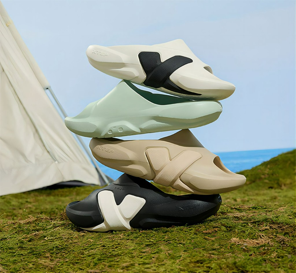 另一双特步北极熊拖鞋同样颜值不低,将 X Logo 融入外底的造型非常高级,辨识度拉满。