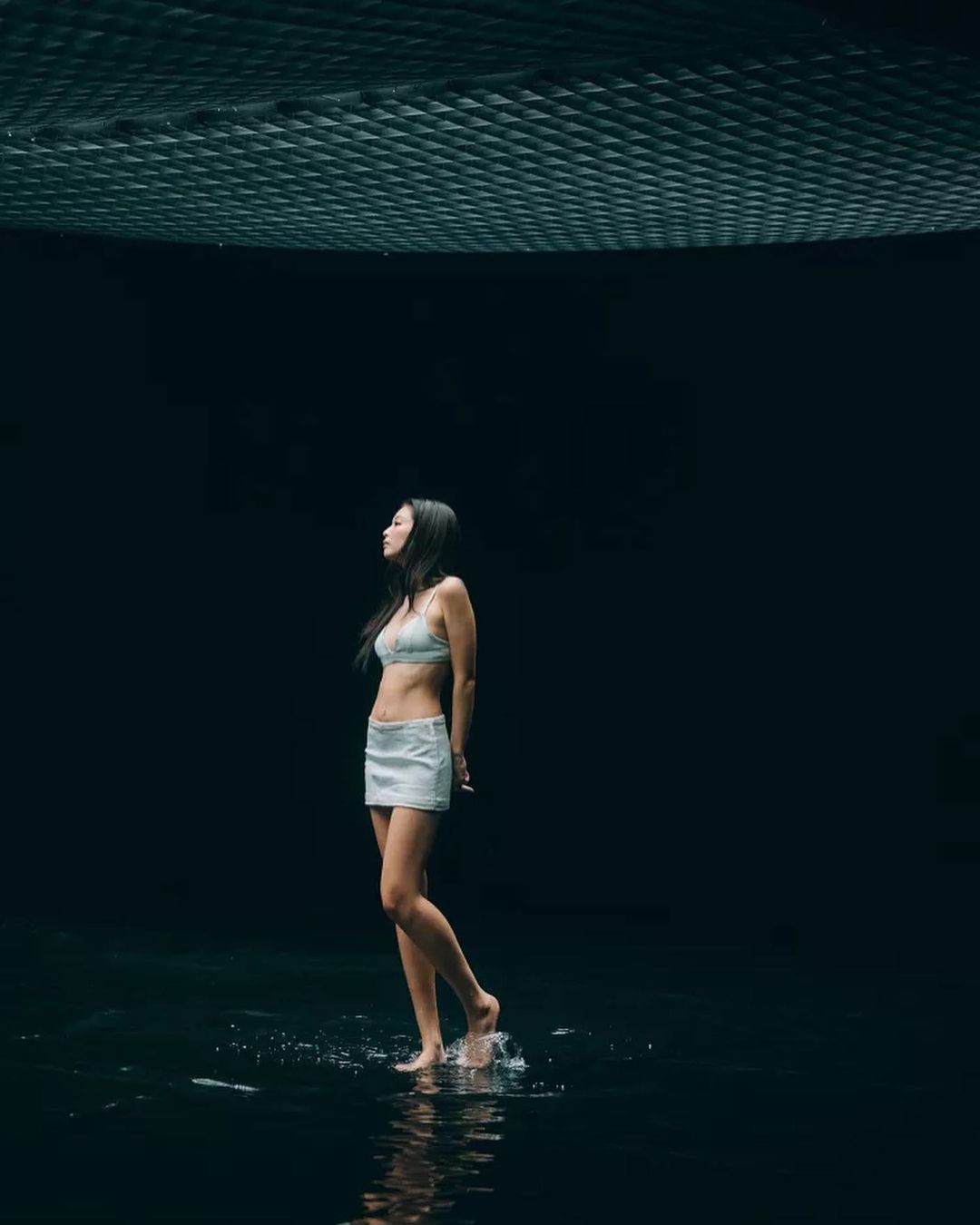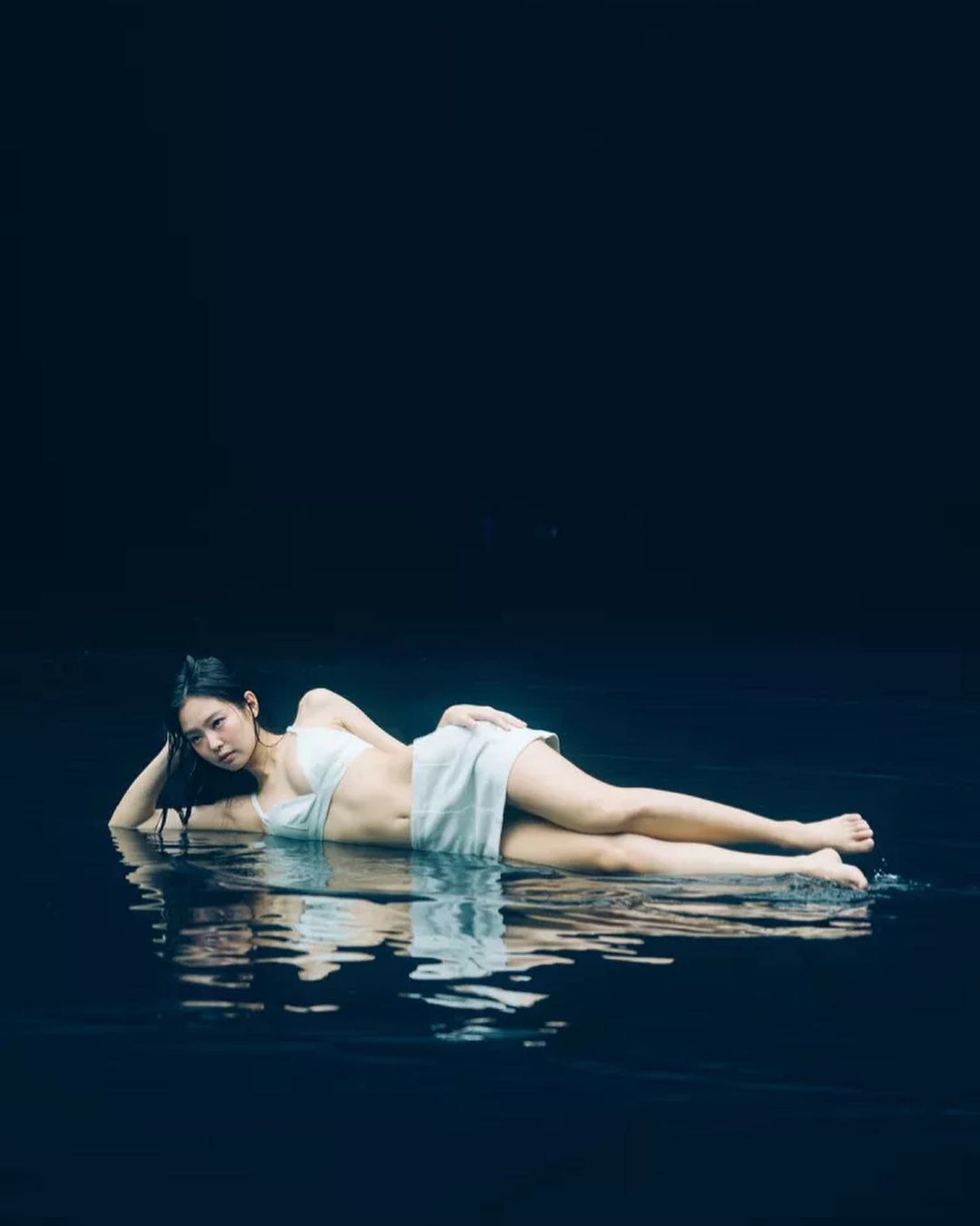 完美身材再加上慵懒气质,这张水中倒影的上身图说是纯欲天花板一点不过分吧?
