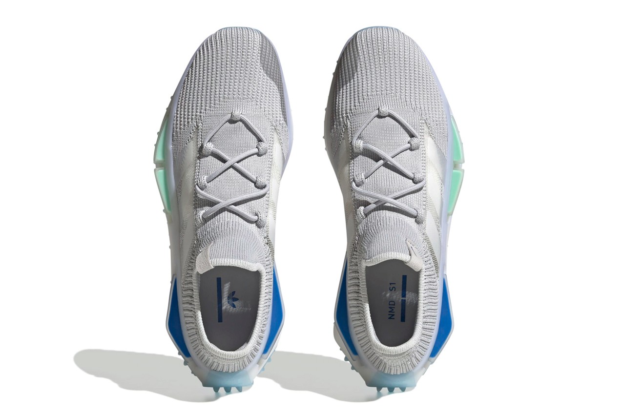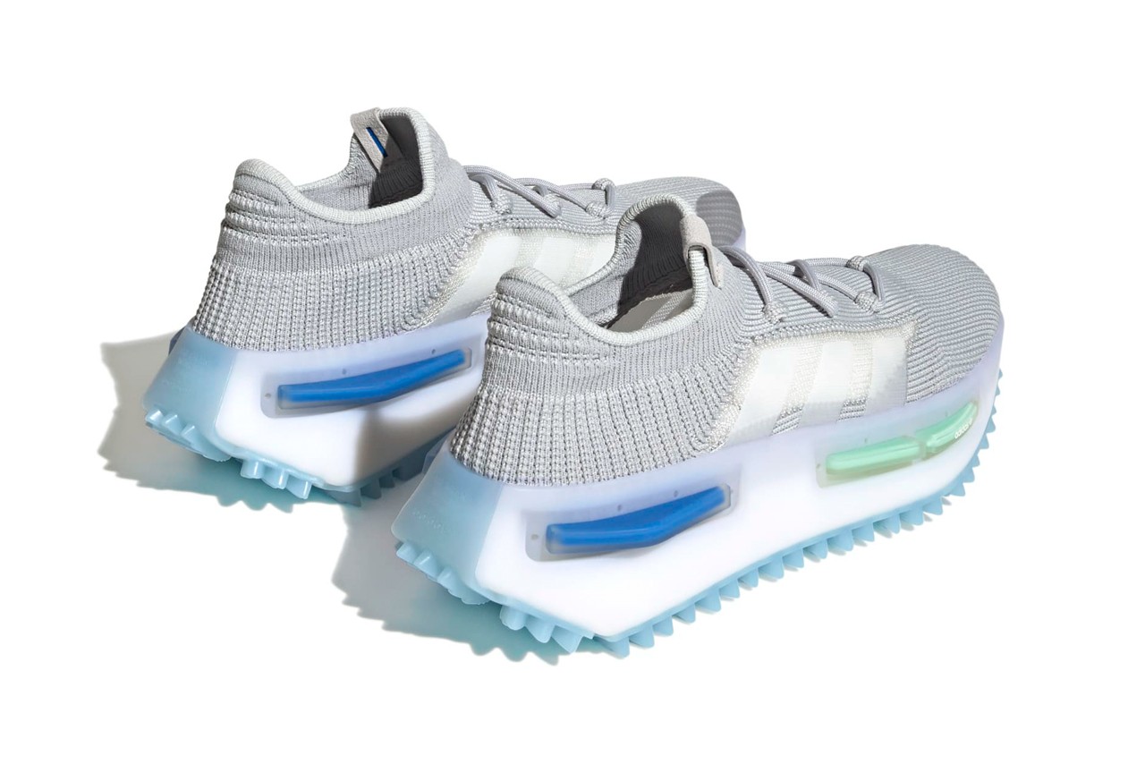 超厚中底有着 NMD 经典的 TPU 点缀,并用蓝、绿色呈现。
