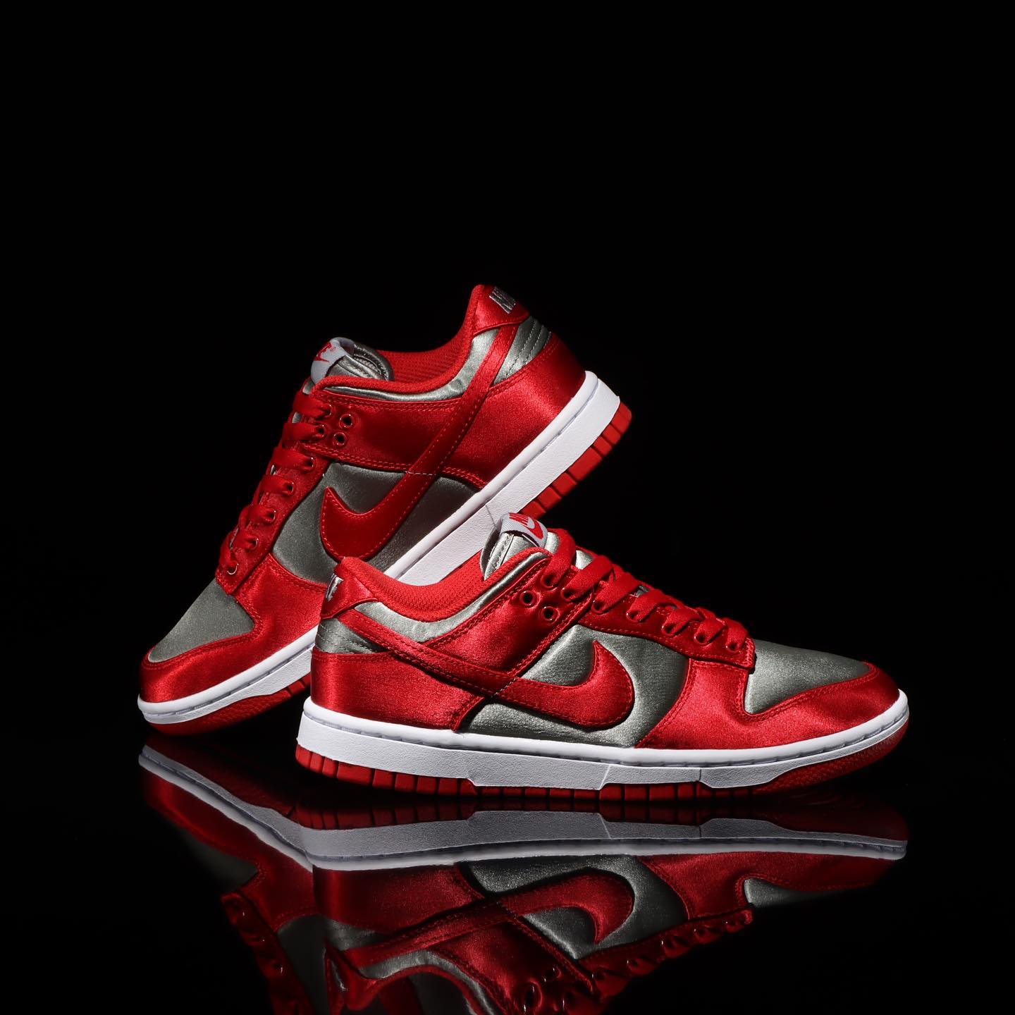 第二双 Dunk Low 采用灰色搭配红色呈现,配色炸眼的同时复古气质十足。