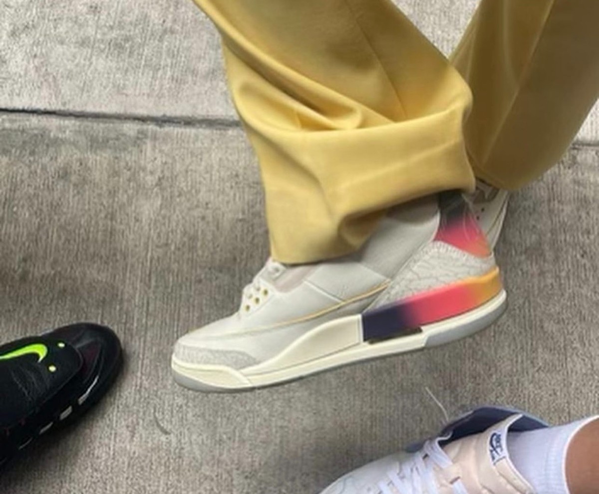 上周末 J Balvin 身着一套黄色休闲装现身 F1 赛场,而更加亮眼的则是他脚上的全新联名 J Balvin x Air Jordan 3。