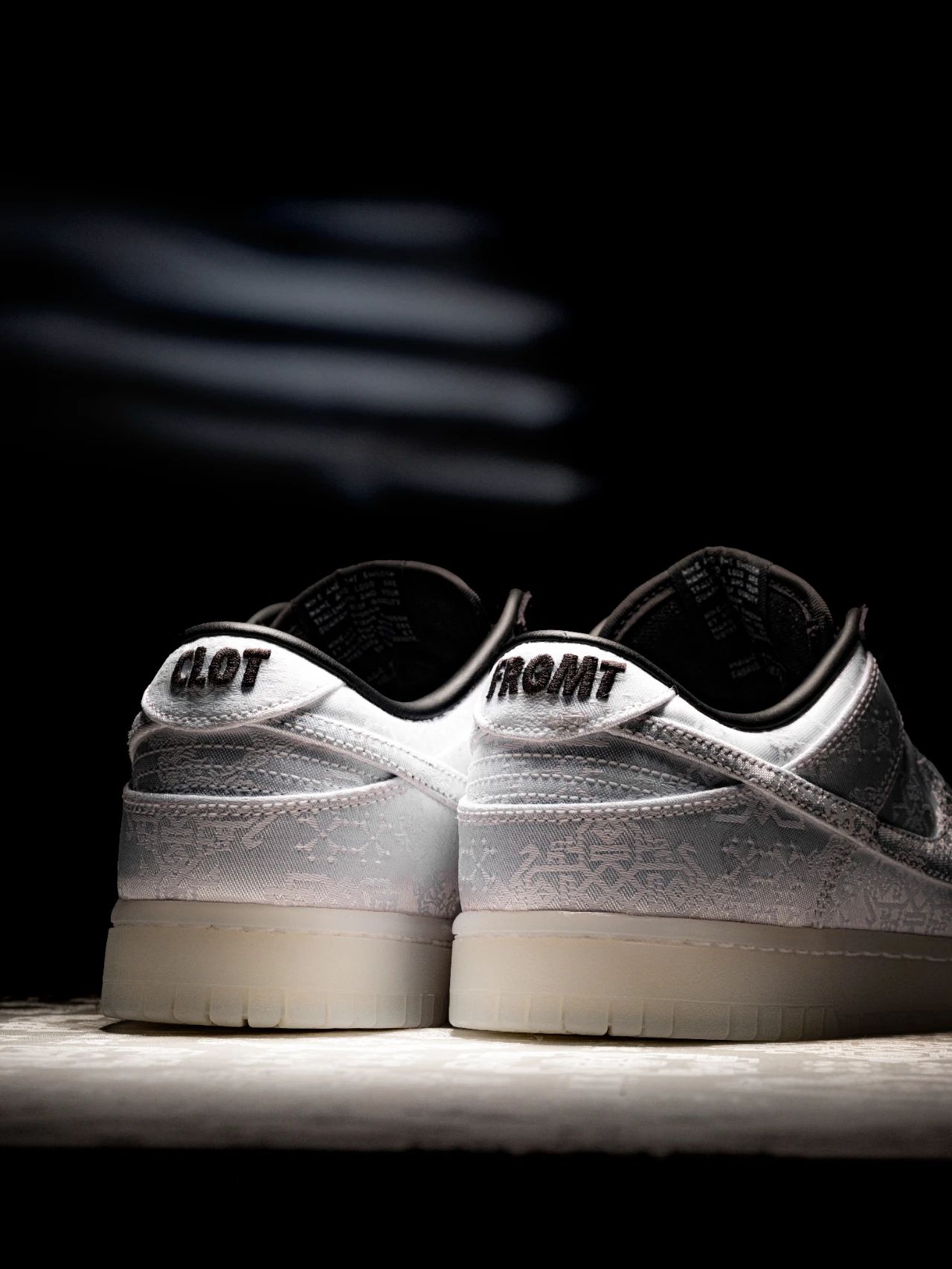 CLOT 标志性 Silk Royale 图案的白色丝绸包裹,与当年的「丝绸系列」保持一致。
