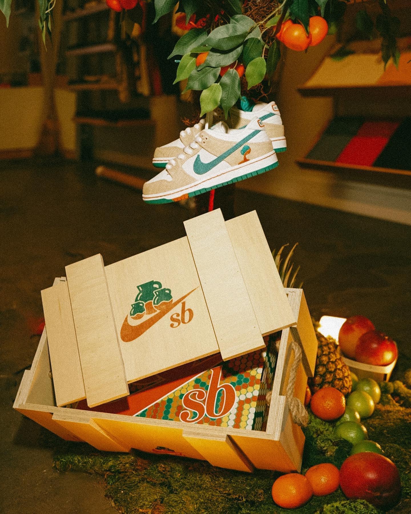 鞋盒方面也十分能打,整体采用木质材质打造,同时印有 Jarritos 和 Nike SB Logo。