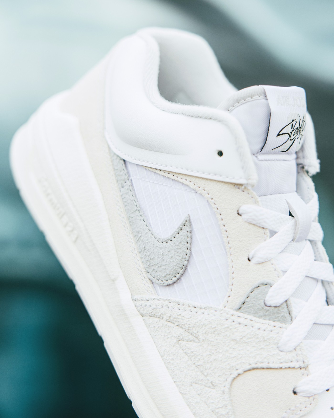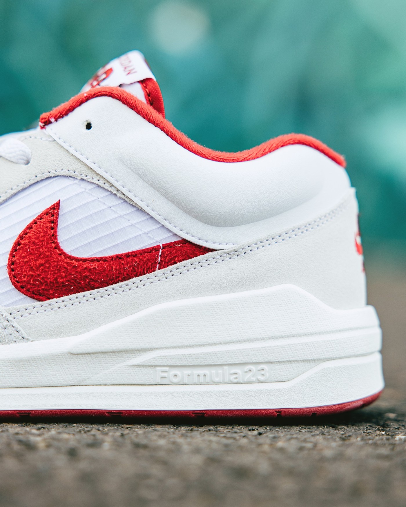 鞋面采用网眼布、皮革和翻毛皮材质打造,彰显 Jordan Brand 一贯的高级质感。
