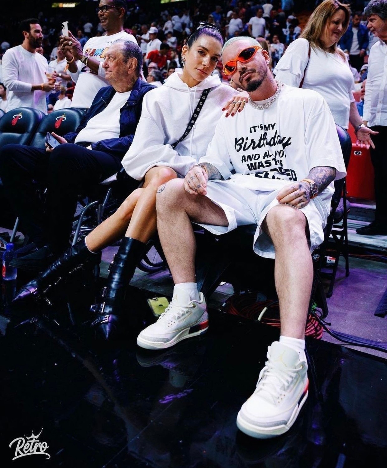 隔天在 NBA 季后赛迈阿密热火对阵纽约尼克斯的场边,J Balvin 再度现身。