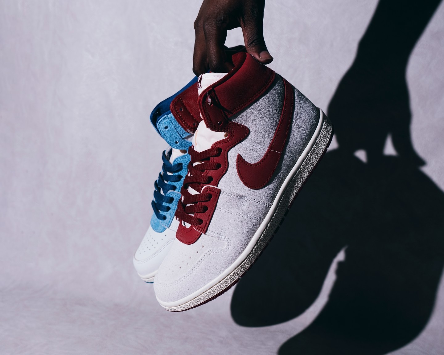 第一双运用富有做旧质感的乳白色为主调,辅以北卡蓝色点缀,灵感来源于上述提到的“北卡幸运短裤”。