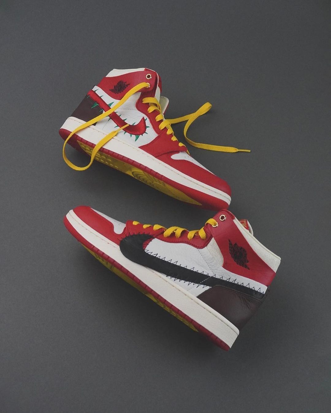 整双鞋以 Teyana Taylor 2018 年的热门单曲 “Rose in Harlem” 为灵感打造,红白双色的鞋身,加上「荆棘」效果打造的 Swoosh,将「玫瑰」主题相呼应。