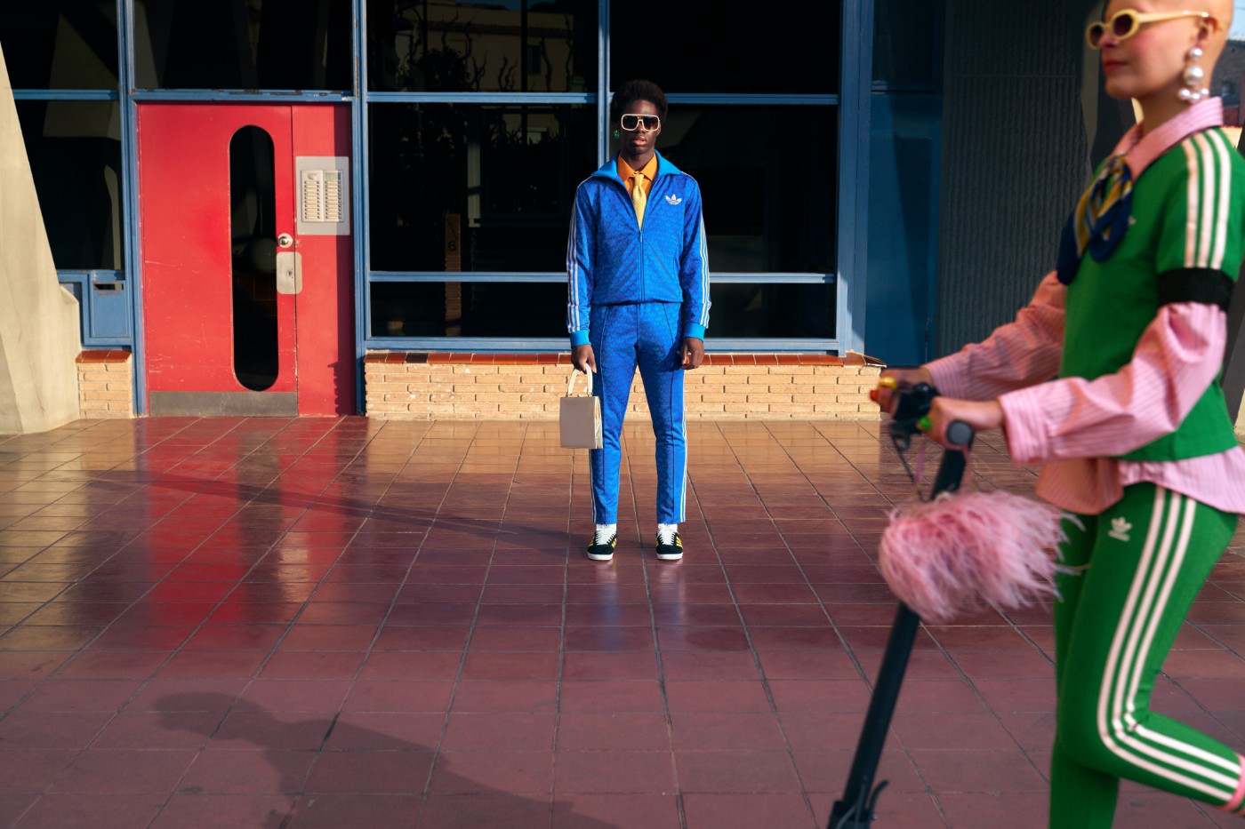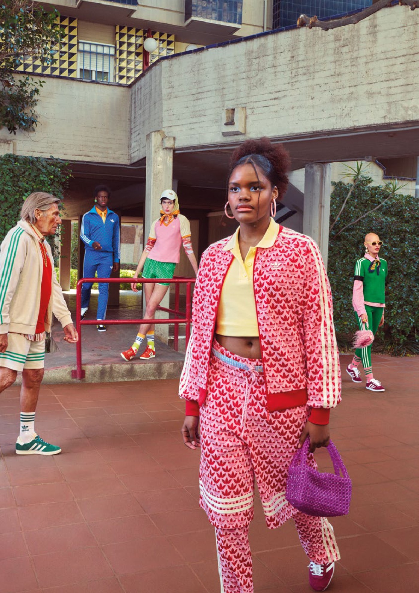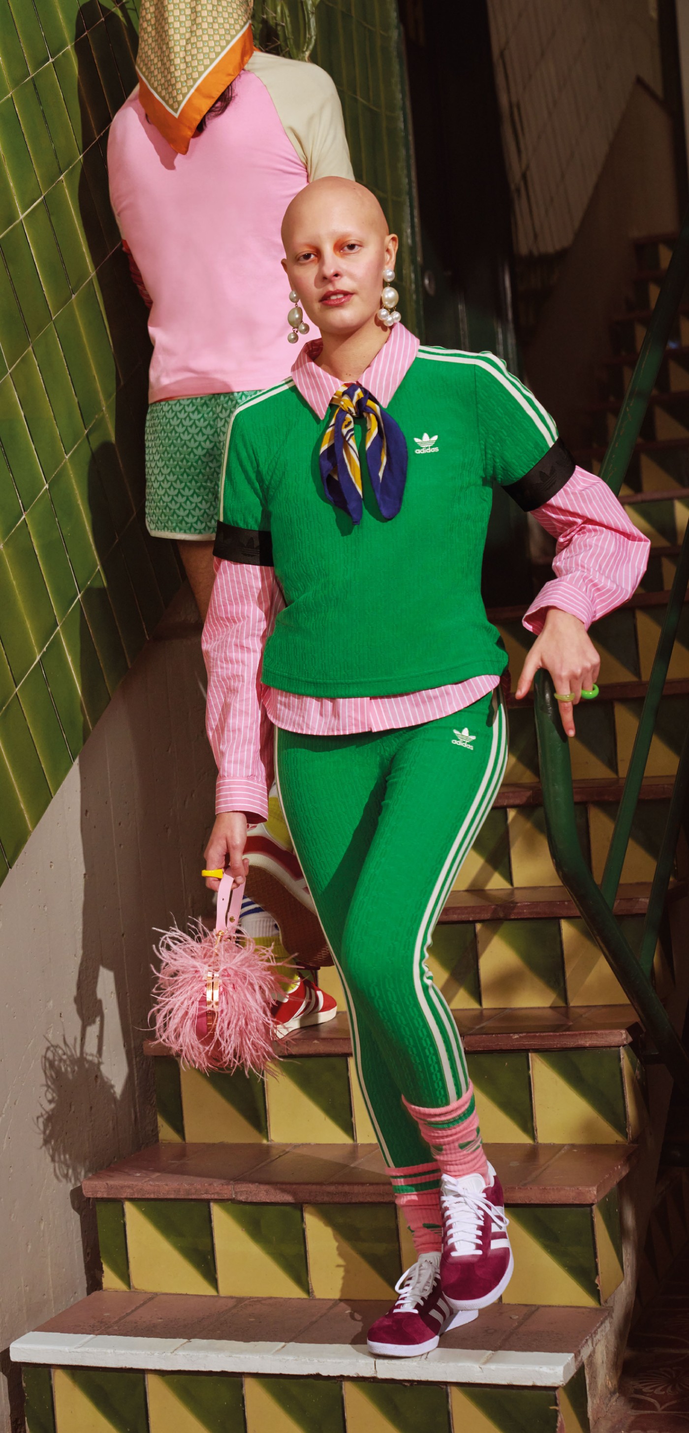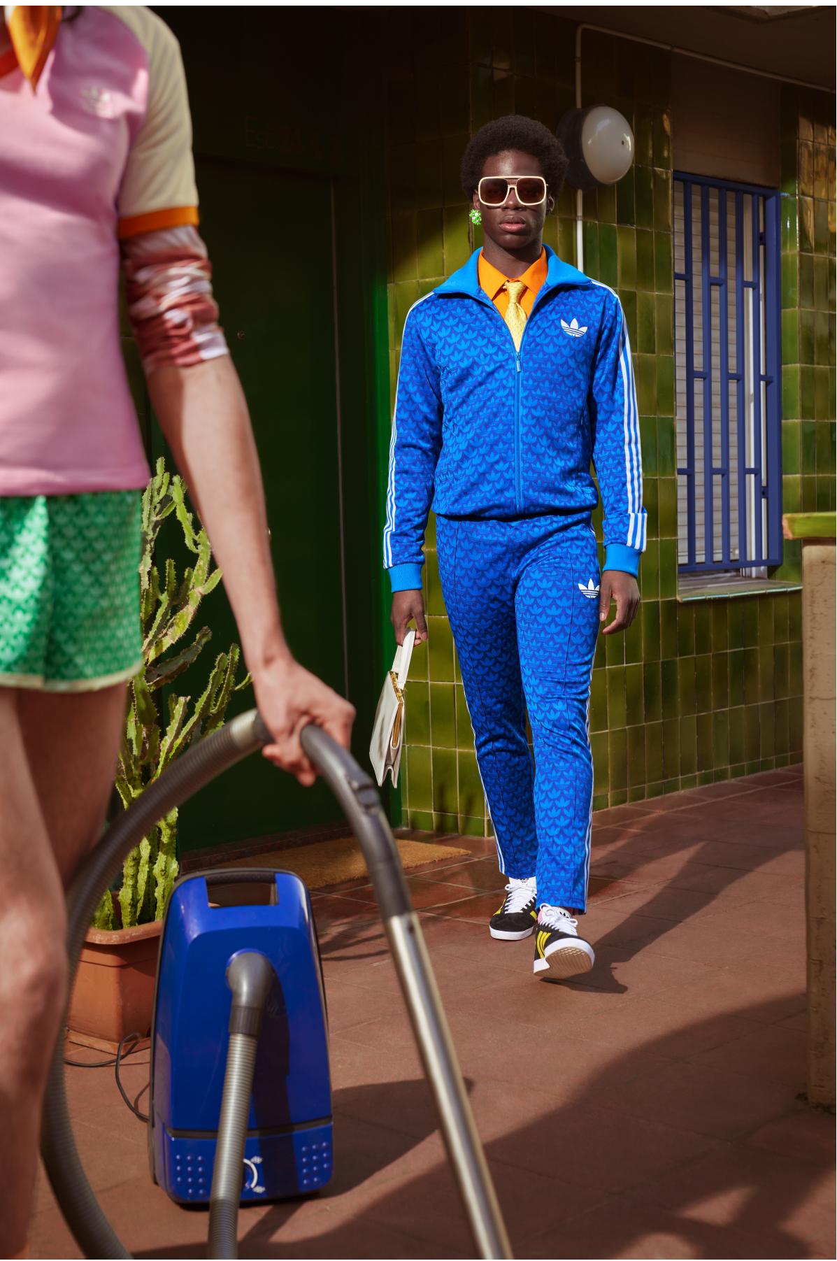 配色方面以蓝、绿、粉等高饱和度颜色作为调色盘,结合标志性的三叶草标志与三条纹细节,在生机焕发的春夏季带来更多亮眼且具有活力的搭配选择。