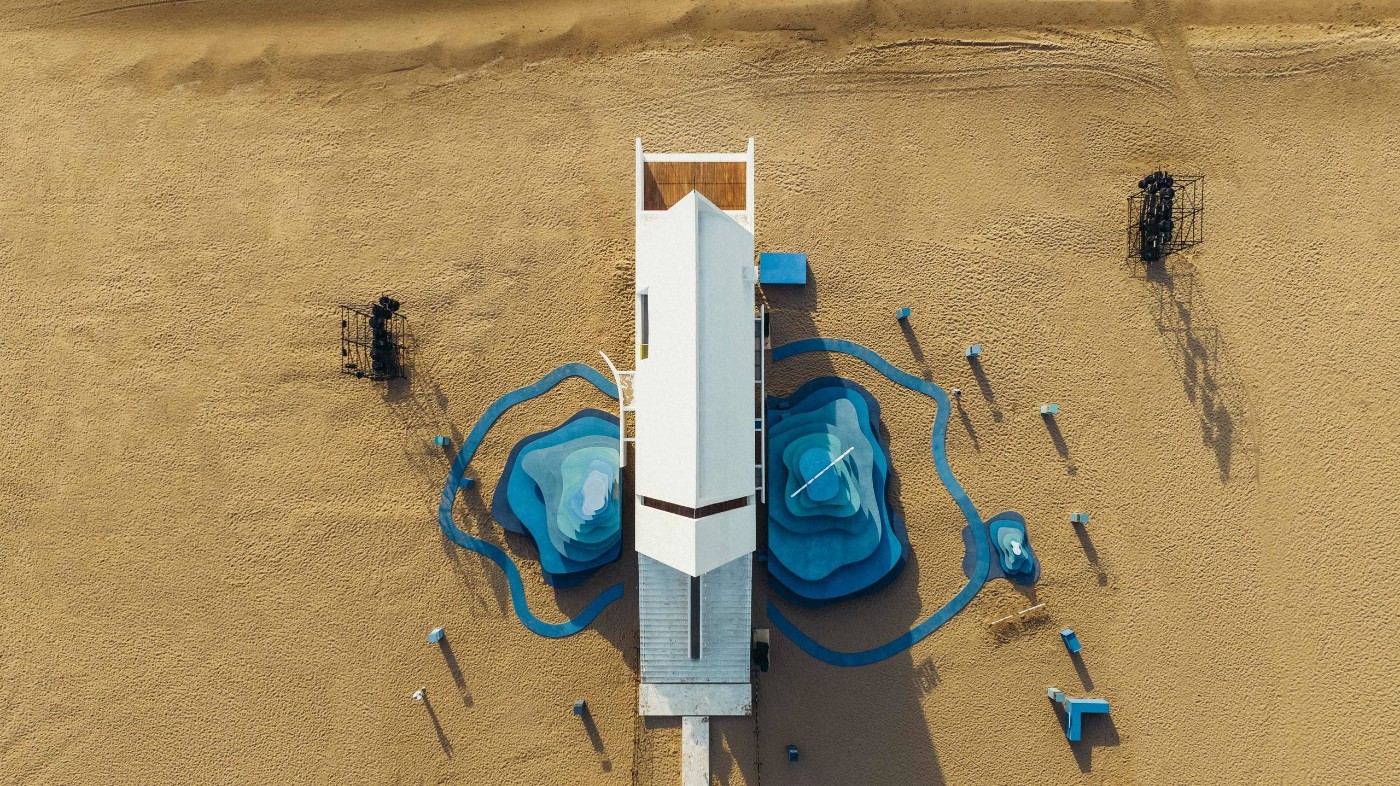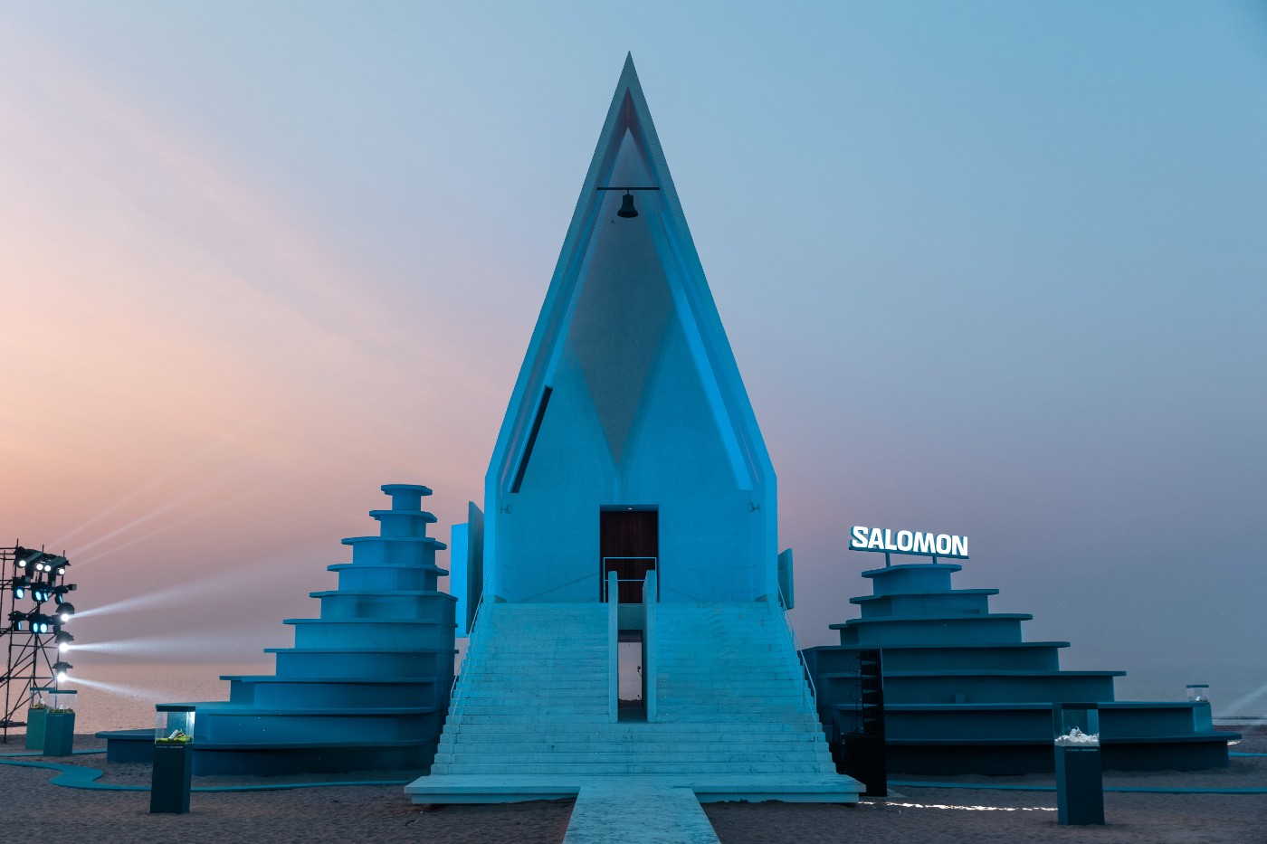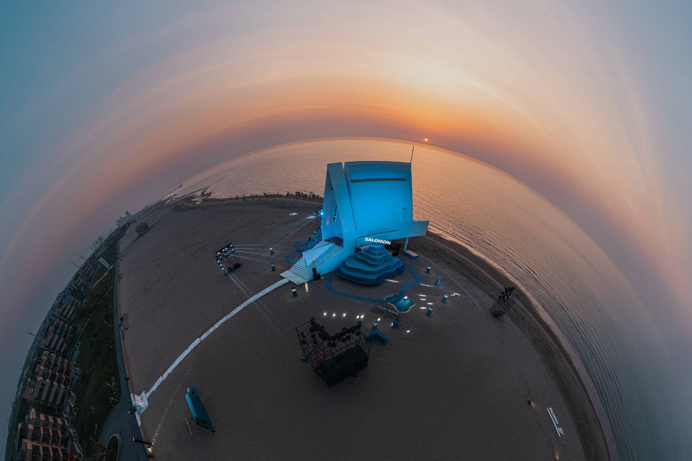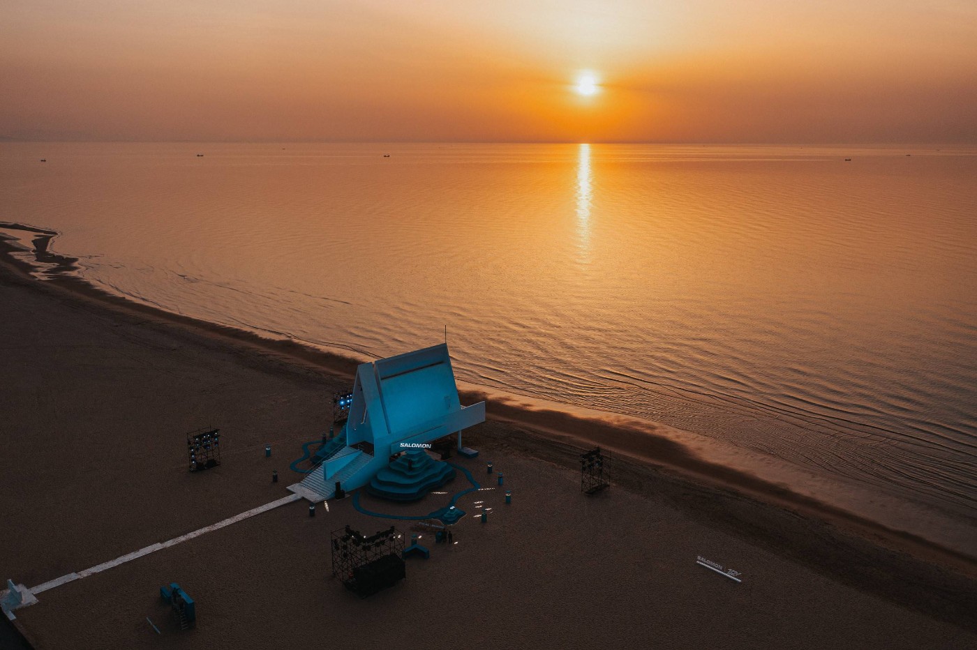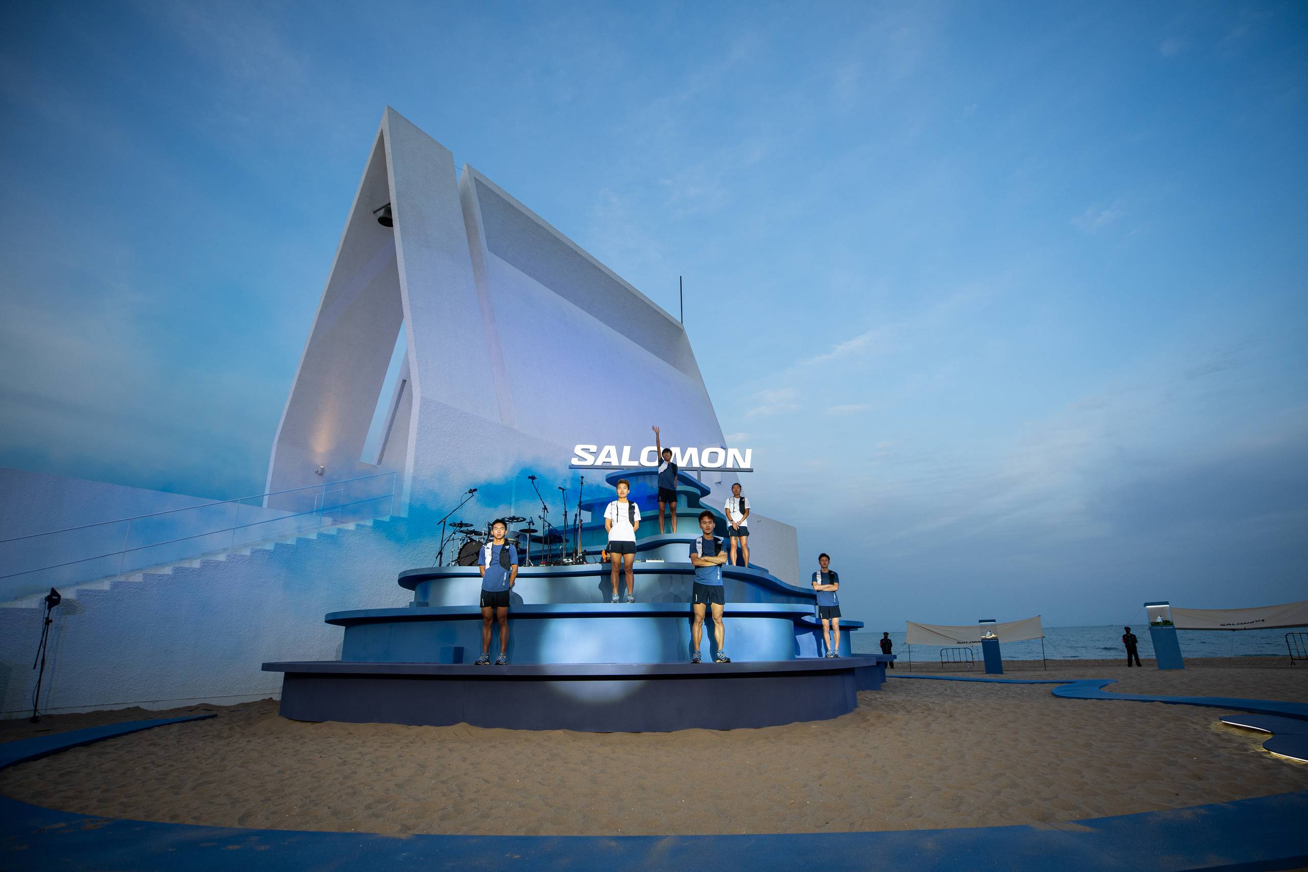 本次活动,Salomon 在阿那亚标志性建筑礼堂旁边搭建蓝调跑道,专属跑道以「海洋等深线」为创意灵感,给跑者沉浸式的海岸跑步体验。