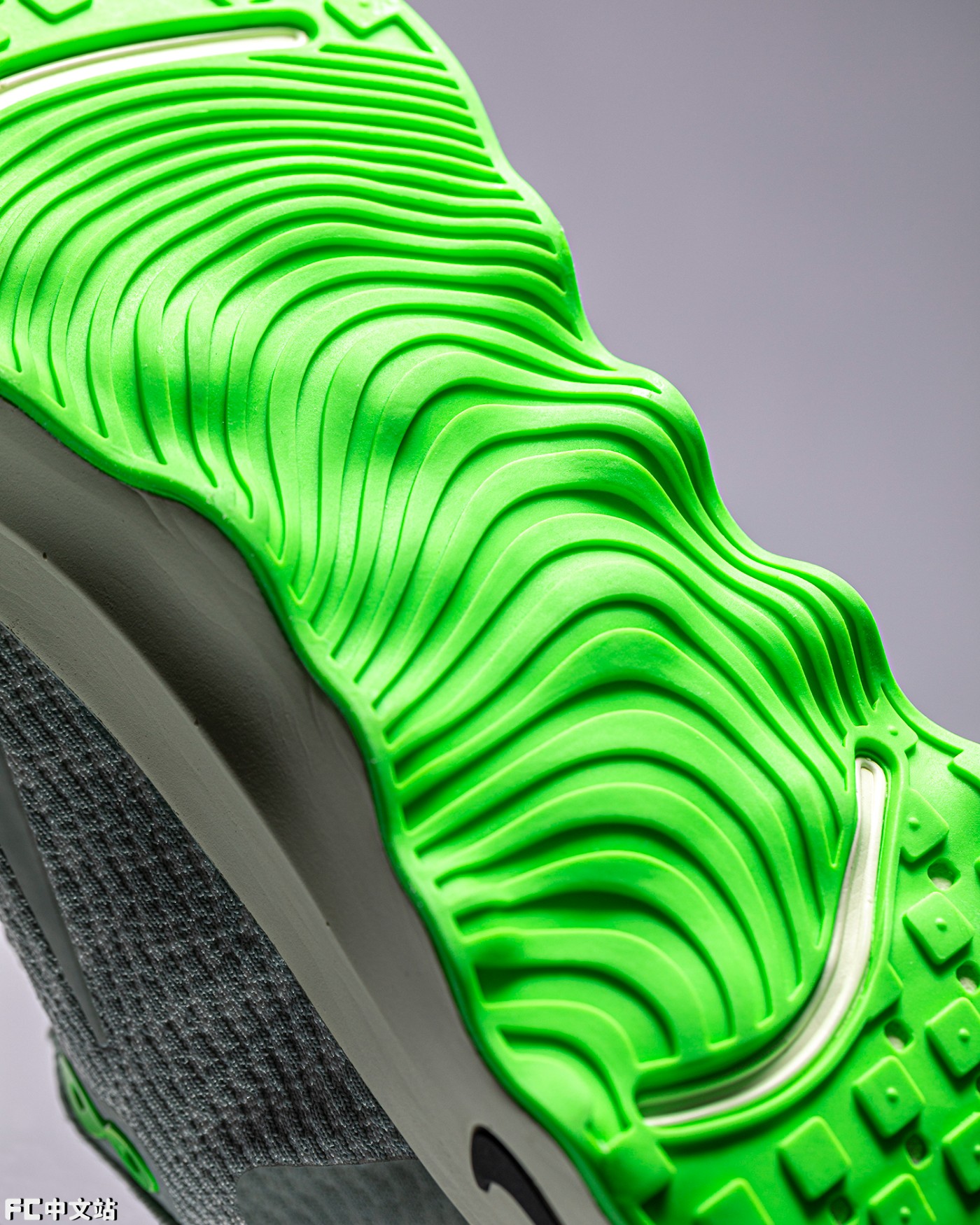 外底也采用全新的 ComfortGroove 凸起结构,针对脚部不同的发力区域带来针对性缓震,看上去非常前卫。