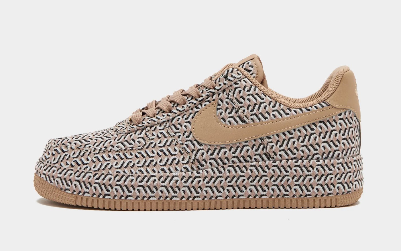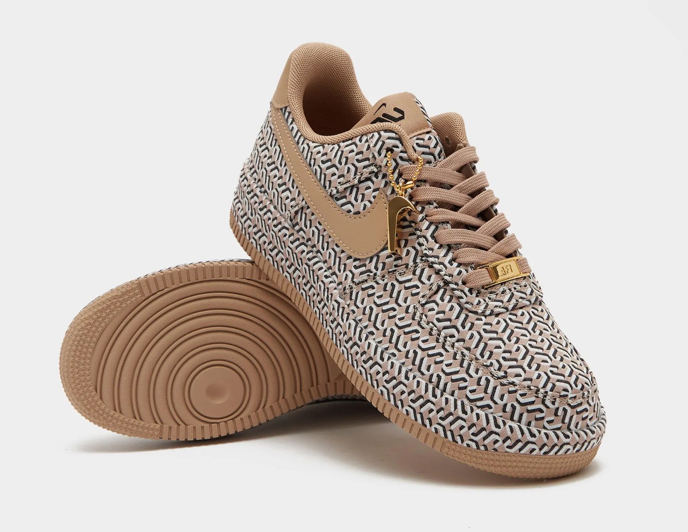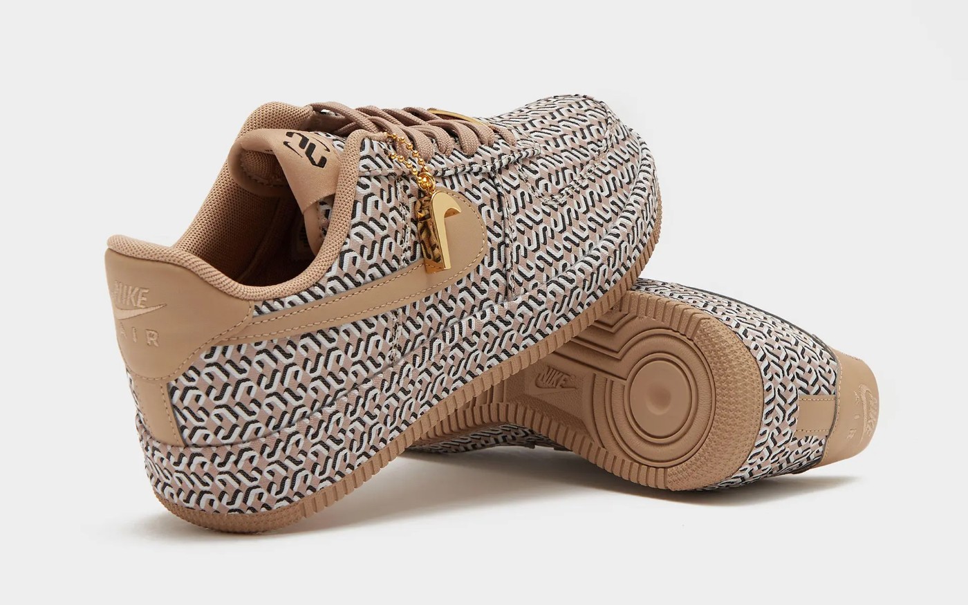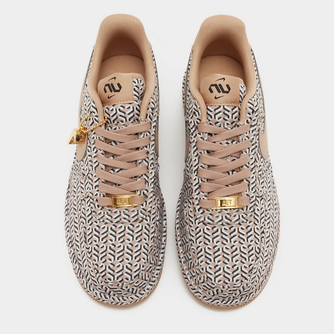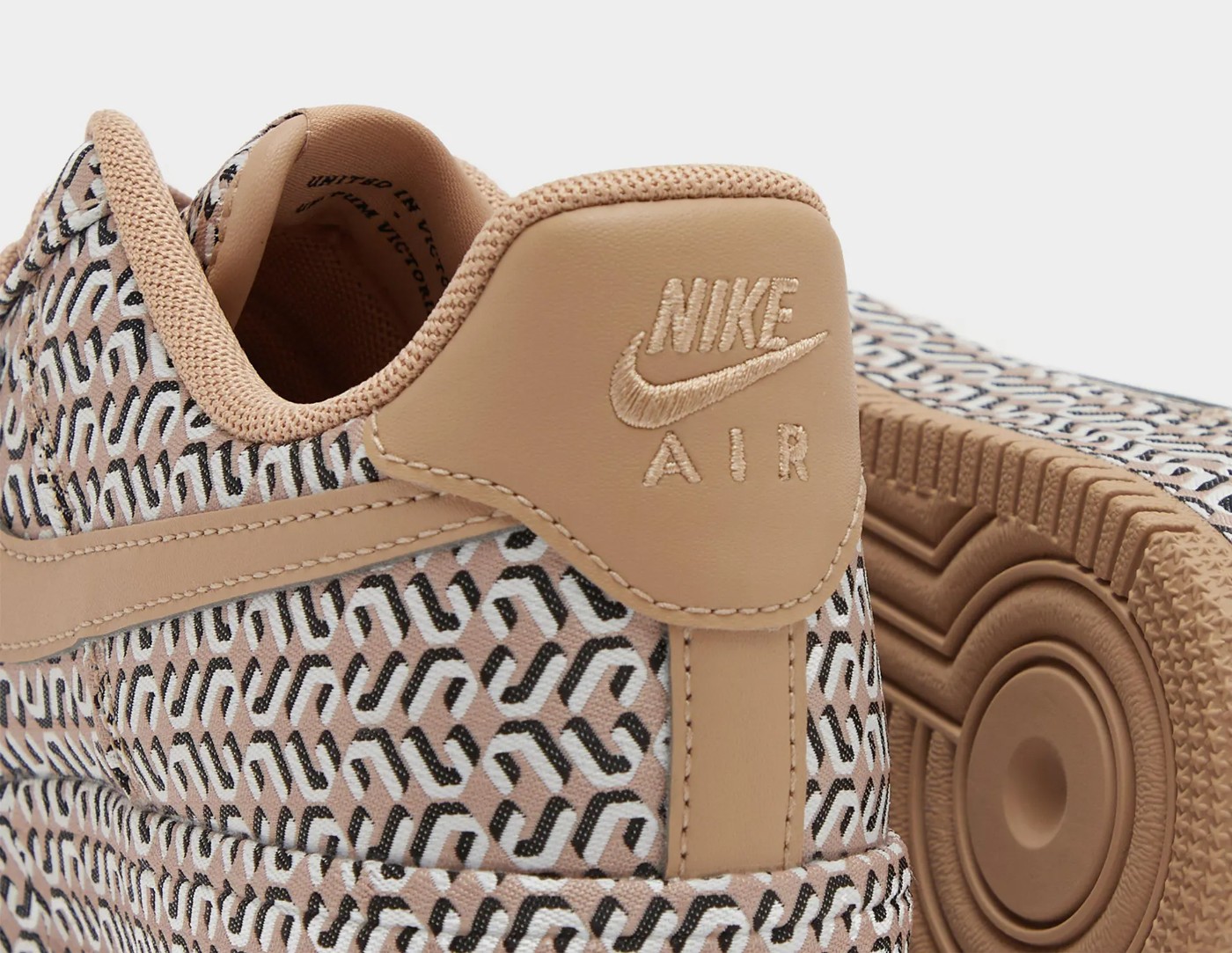 鞋身以奶茶色调装扮,满印 U、V 字样花纹,营造奢侈品球鞋一般的氛围感。
