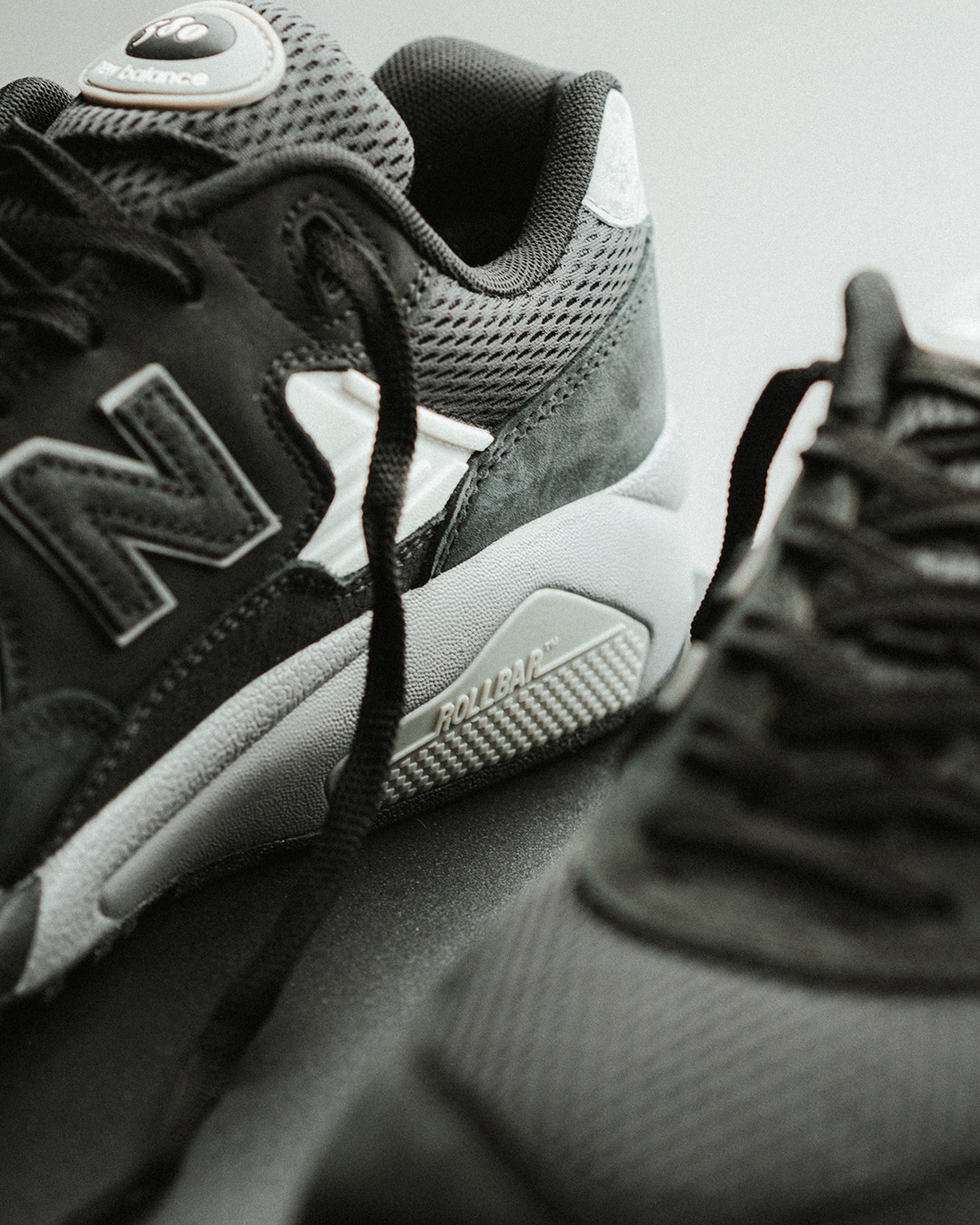 鞋舌细节点缀有 580 字样,显示出鞋款身份。