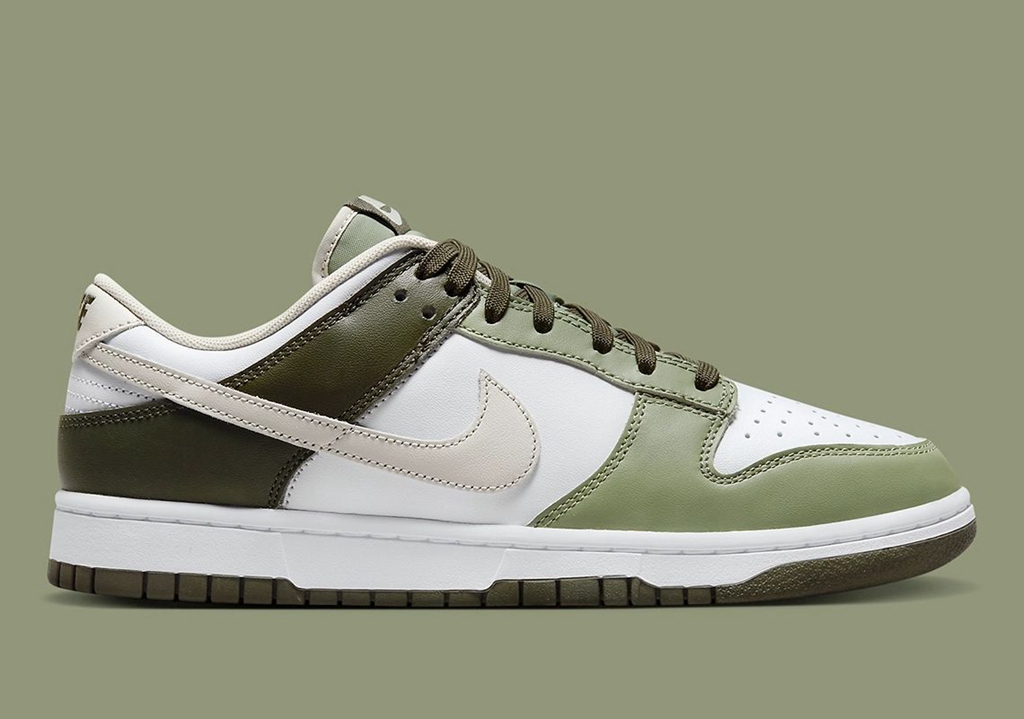 近日,一双橄榄绿装扮的 Dunk Low 释出官图,颜值还真不低。