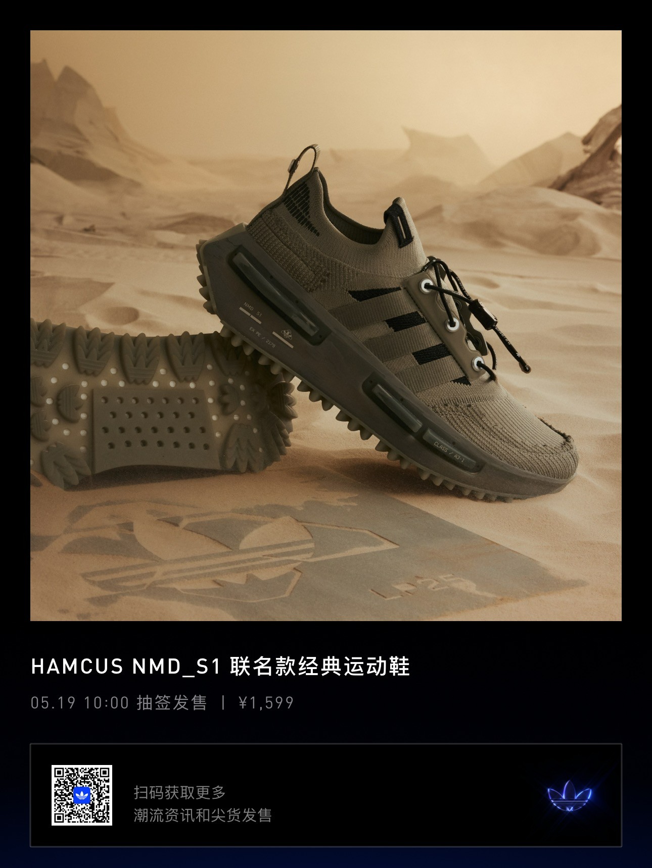 其实此次联名中还包含一双全新 HAMCUS x adidas Originals NMD S1。