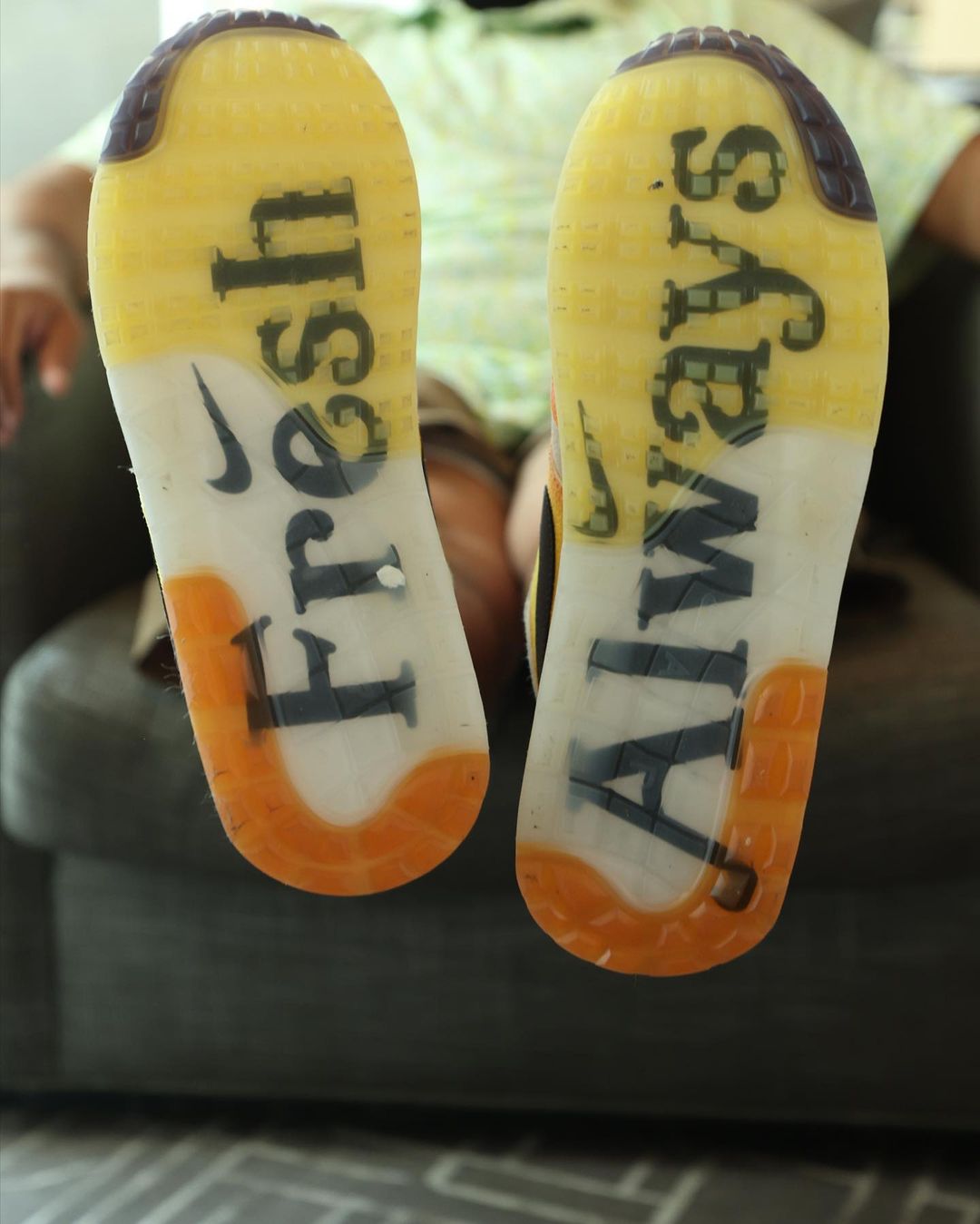 脚上踩的这双鞋是 CDG x Nike Air Max Sunder Max。
