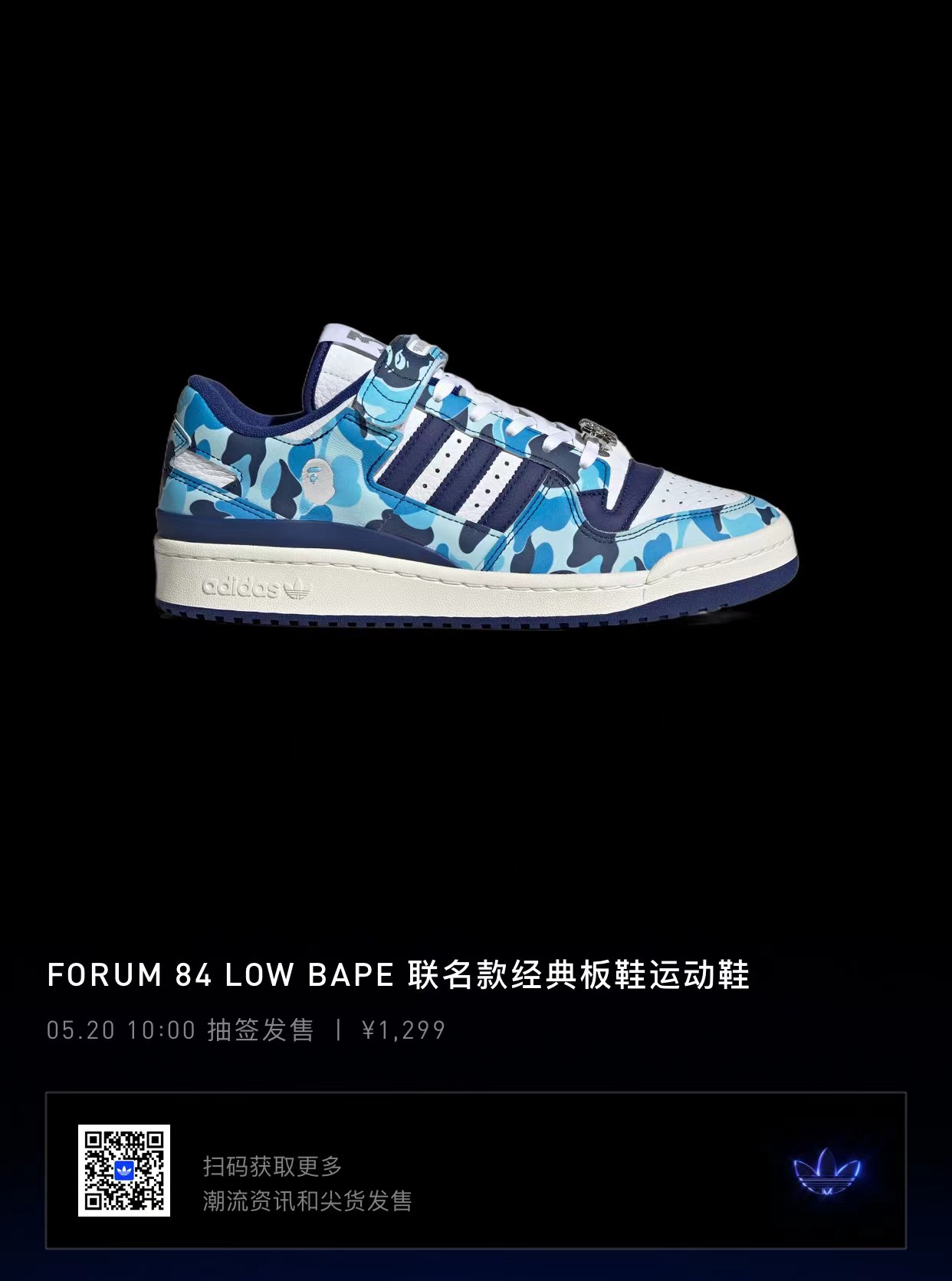 这两款 adidas Originals x BAPE® 30th Anniversary FORUM 刚刚在 adidas CONFIRMED APP 上线登记抽签页面。