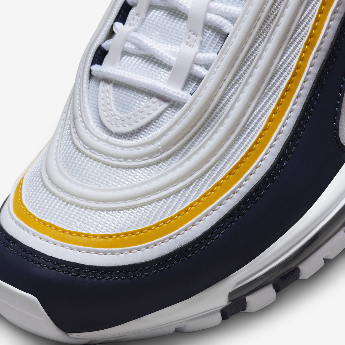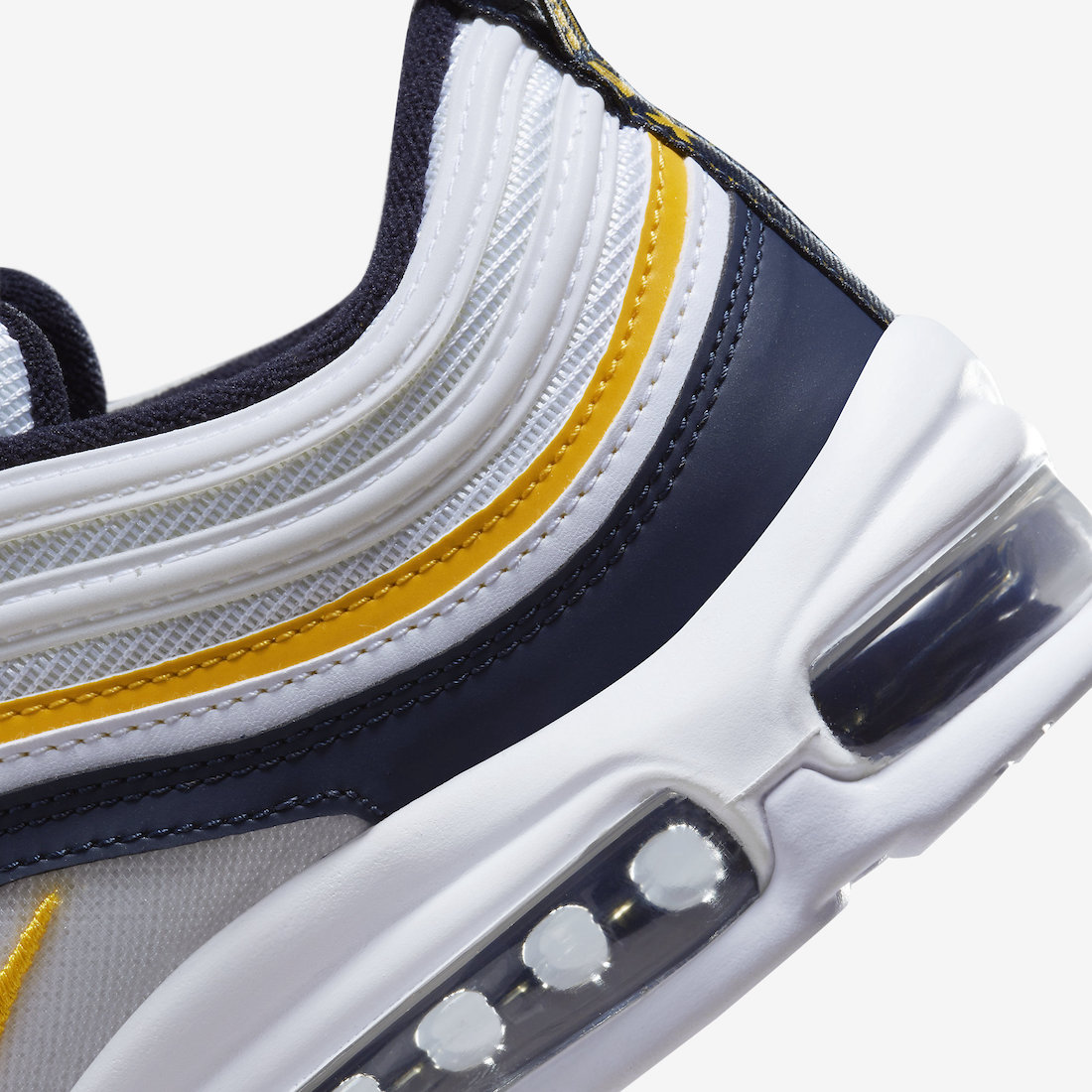 近期,一双「密歇根」配色 Nike Air Max 97 官图曝光,颜值方面绝对是相当能打了。