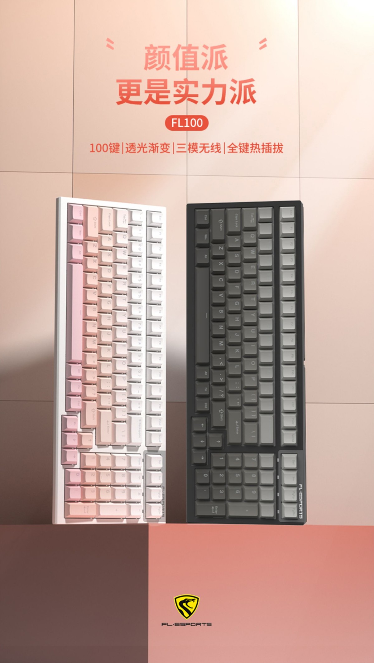 腹灵 FL100 算是目前市面性价比非常高的简约 100 键键盘。