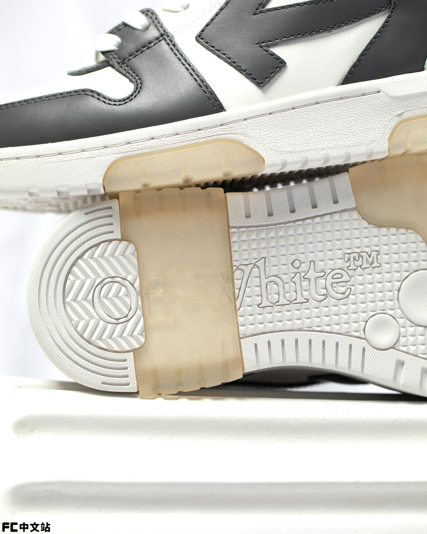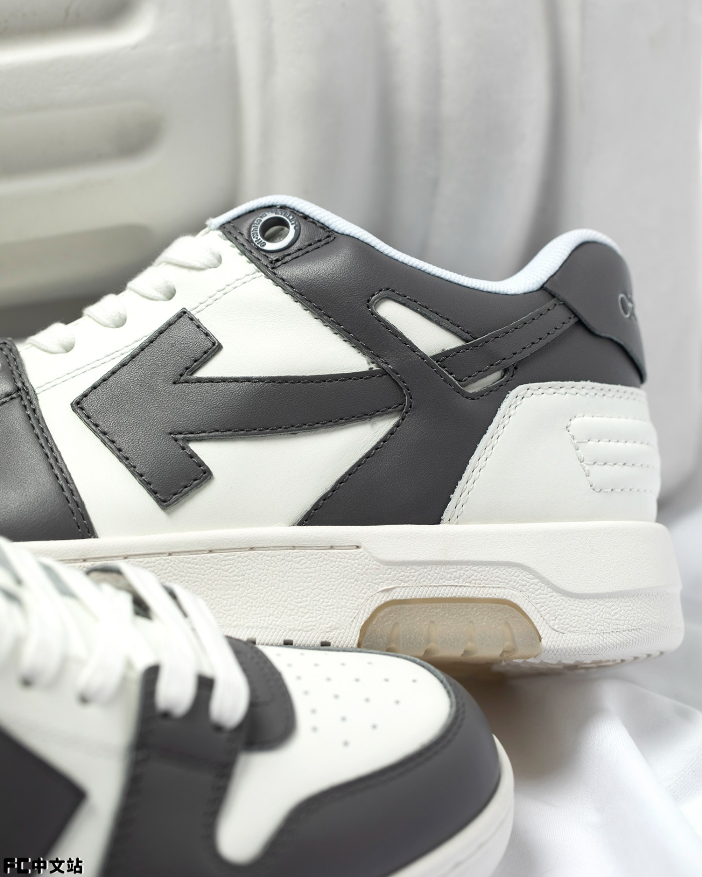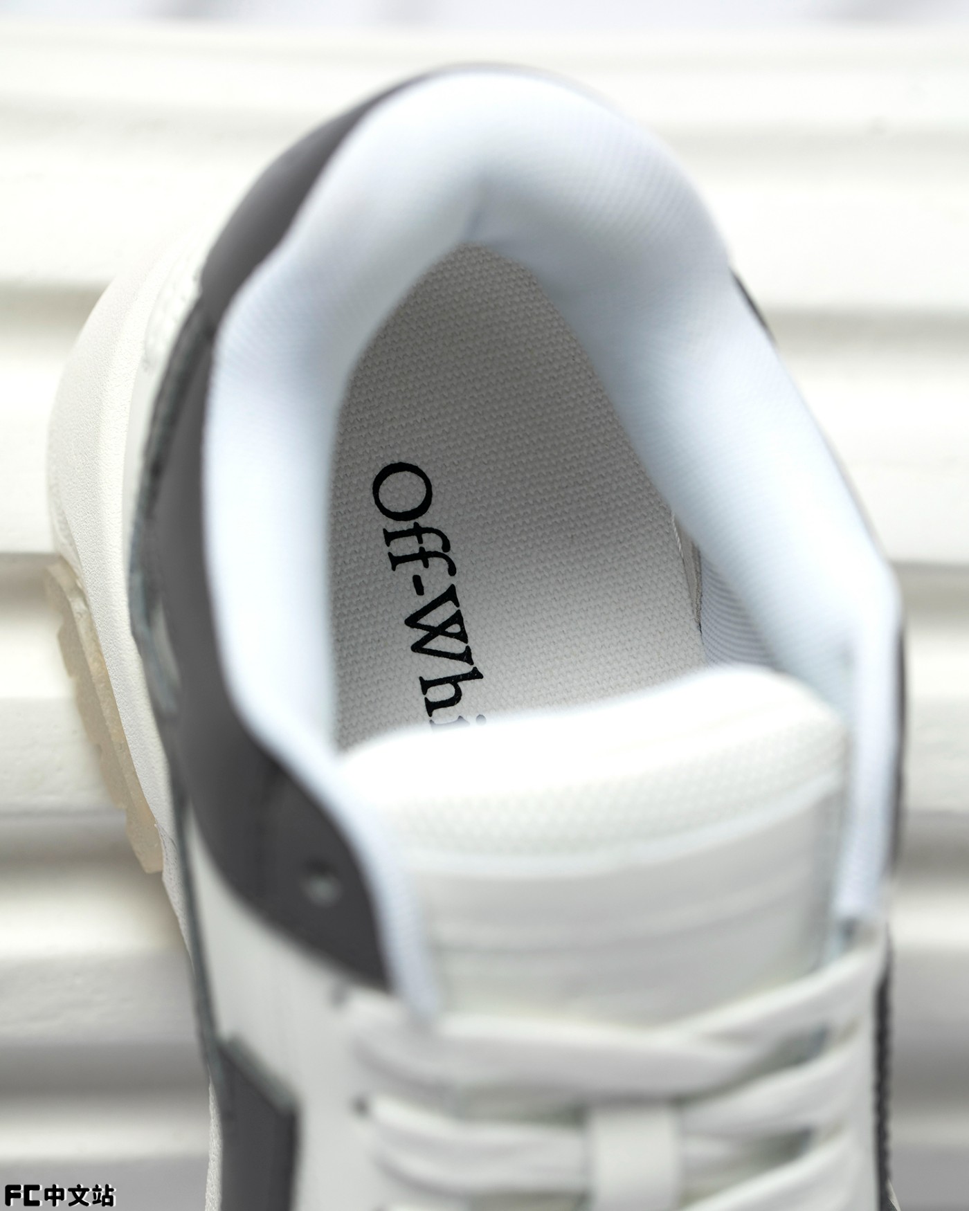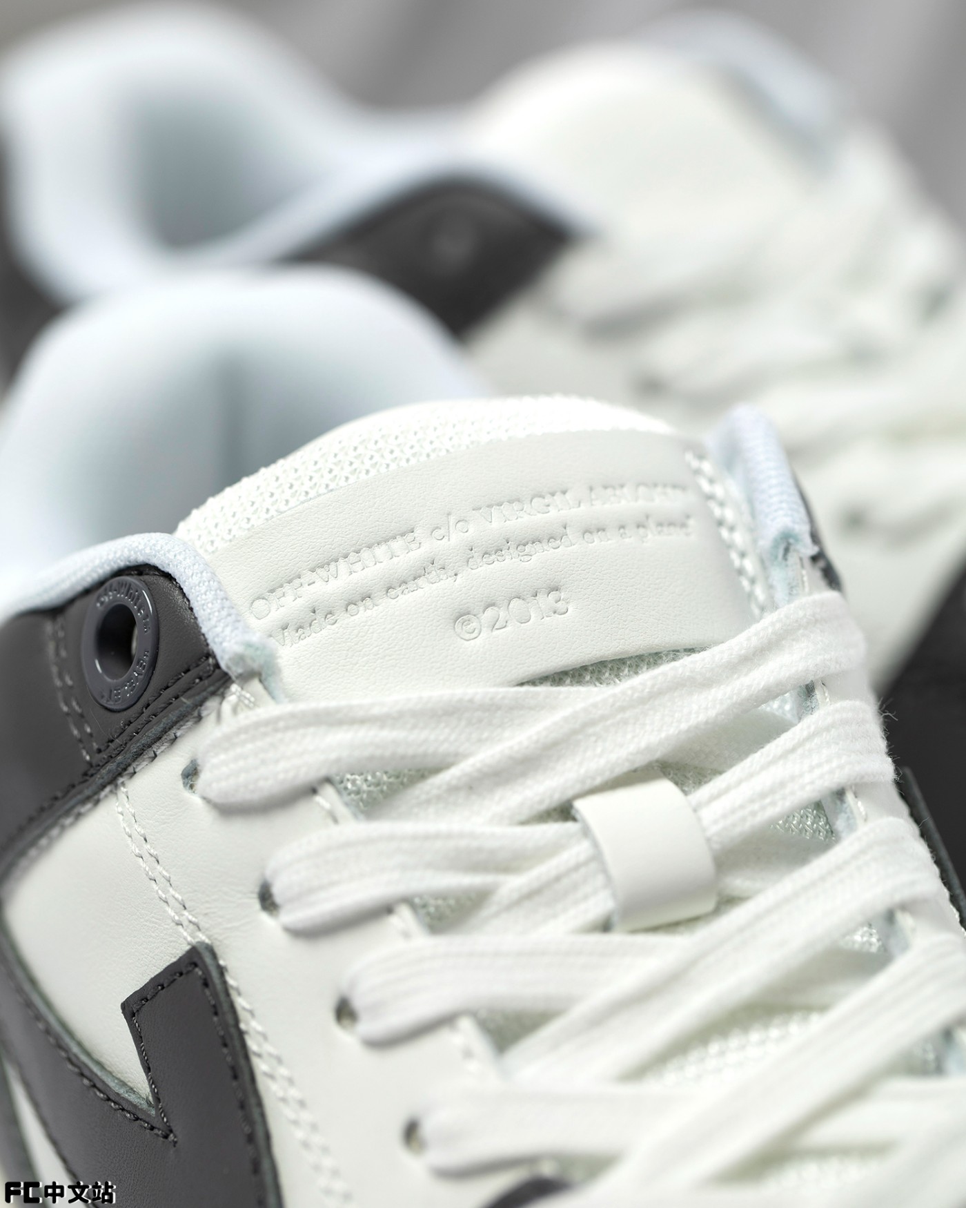 细节方面同样有精致刻画,包括鞋舌皮革标签,以及带有 OFF-WHITE 字样的金属鞋带孔。