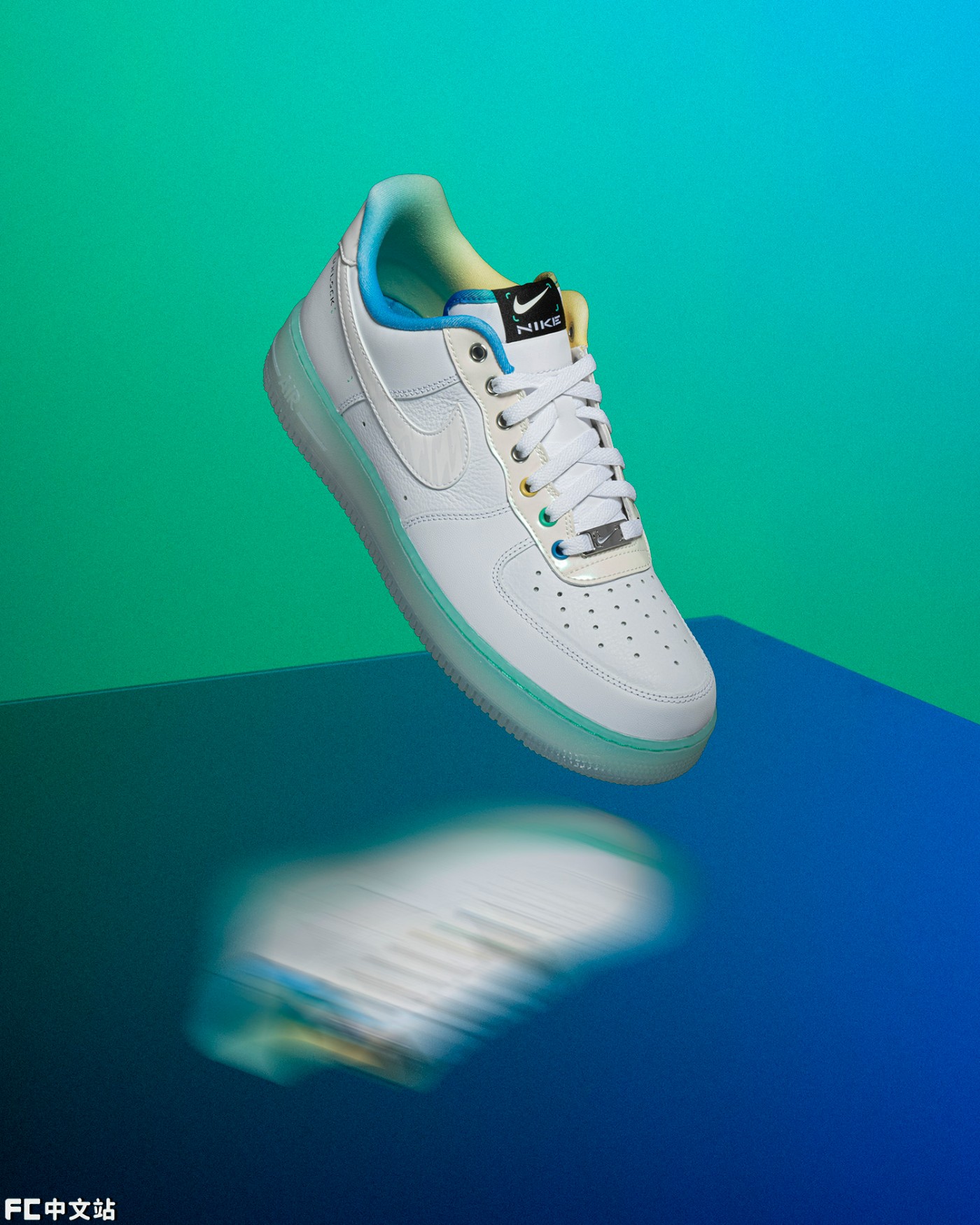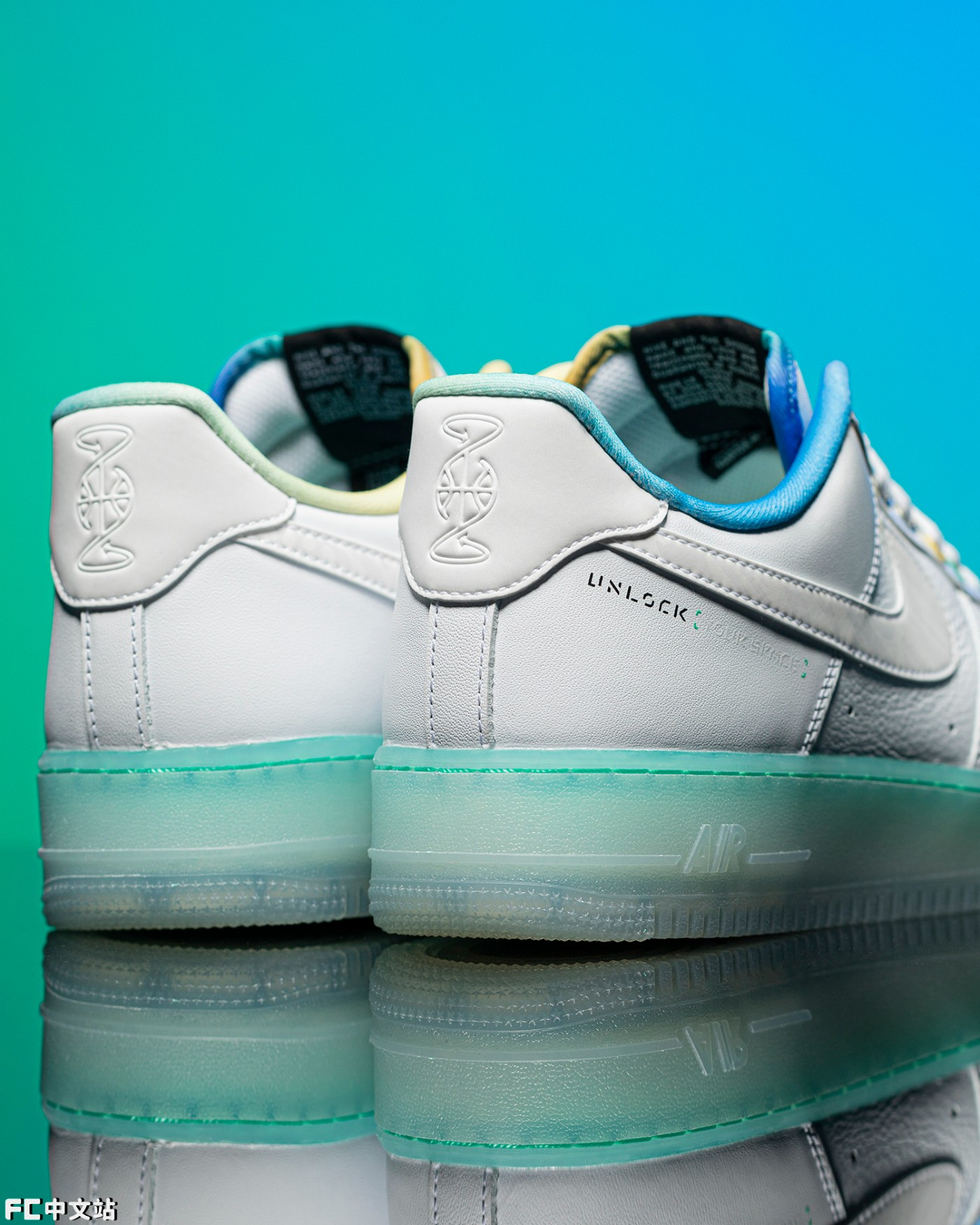 后跟也将传统 Nike Logo 改为了此次专属的限定 Logo,另外这次中底的通透度不低,淡淡的绿色让质感如同翡翠一般晶莹剔透。