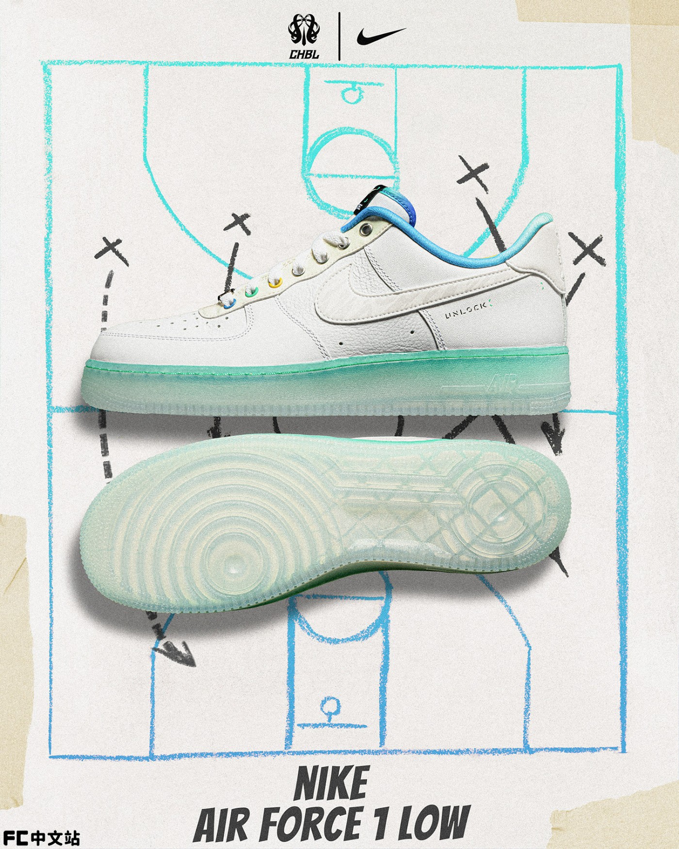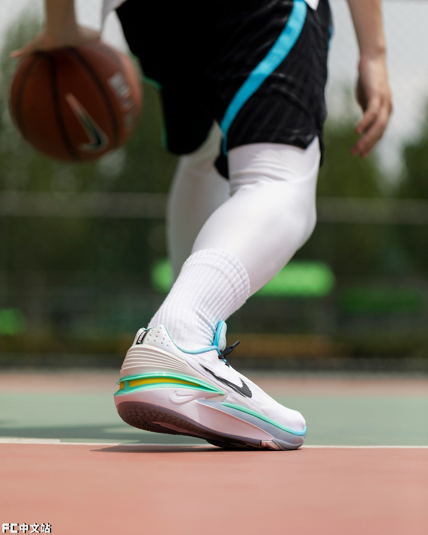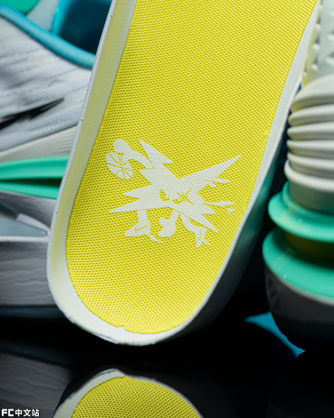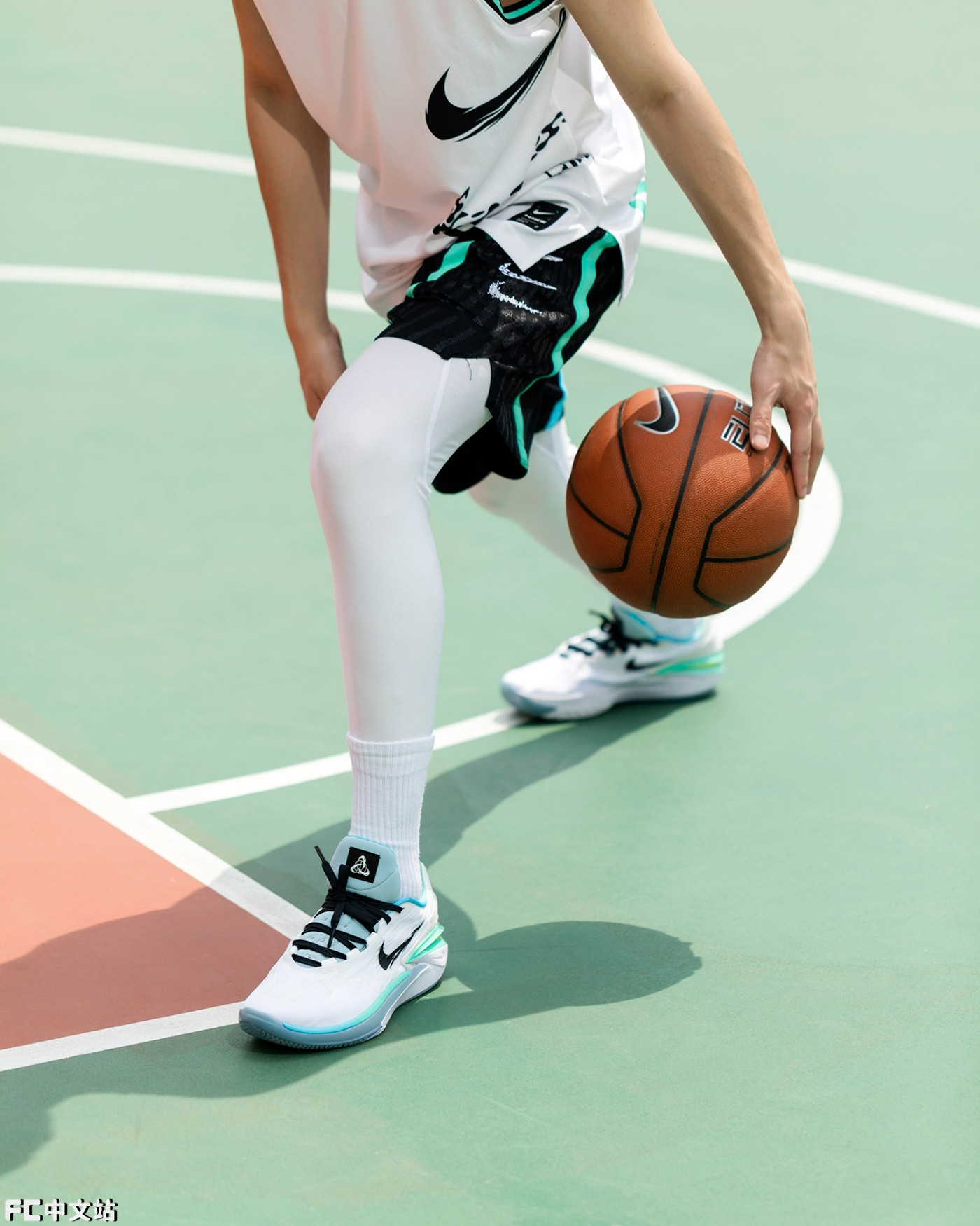配色方面,为了强调年轻球员们的青春感,选择了清爽讨喜的蓝绿渐变,结合白色鞋面,夏日氛围简直拉满。