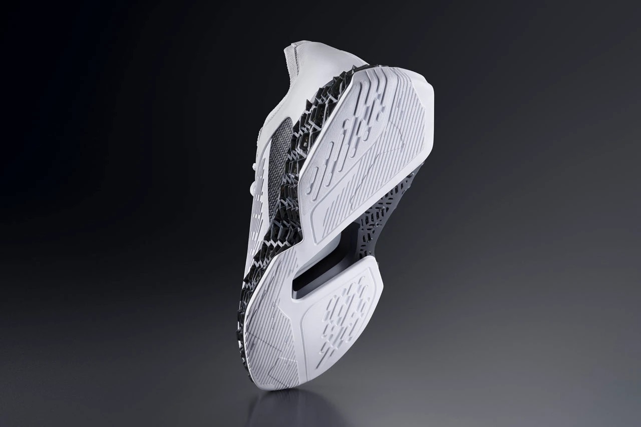 共带来黑、白两款配色,流线型鞋身极具速度感,搭配 3D 打印中底,视觉效果更科幻。