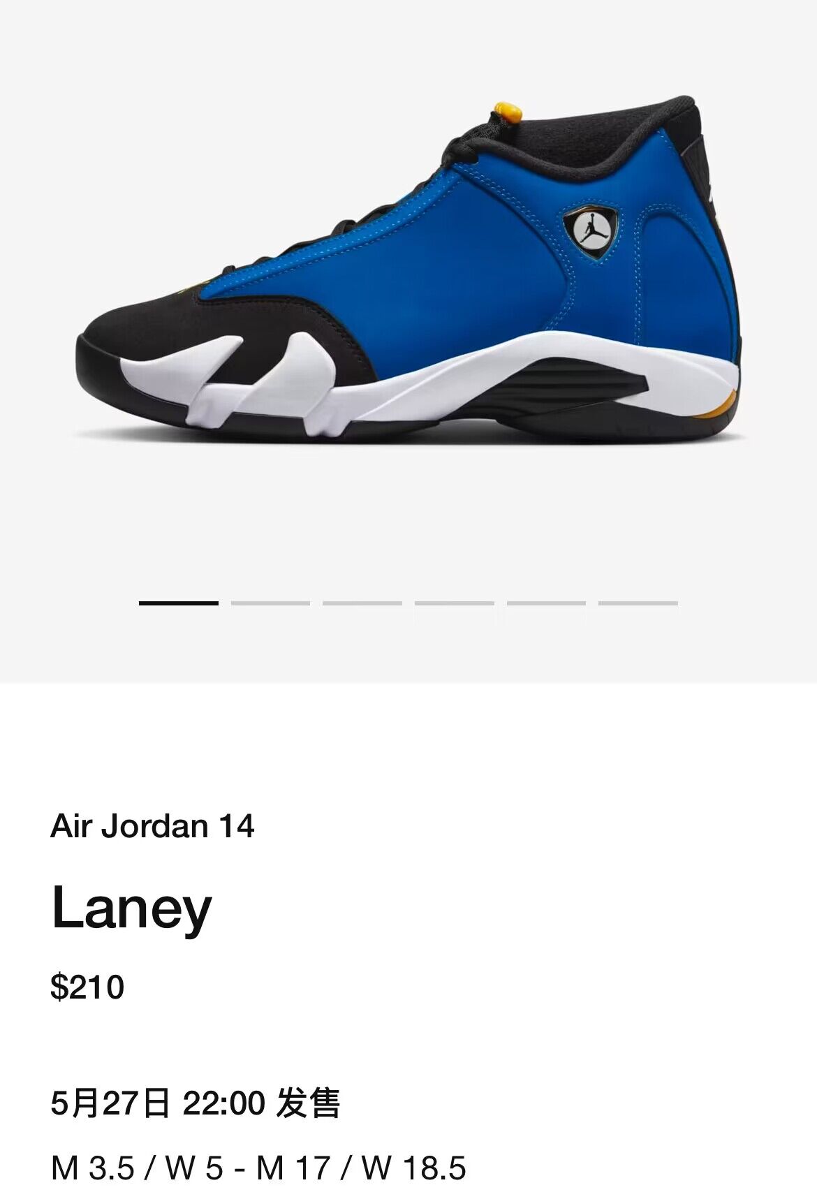 整双鞋以通体身蓝色为主调,辅以黑色、黄色点缀鞋身细节,目前现已在美区 SNKRS APP 上架,将于 5 月 27 日登场。