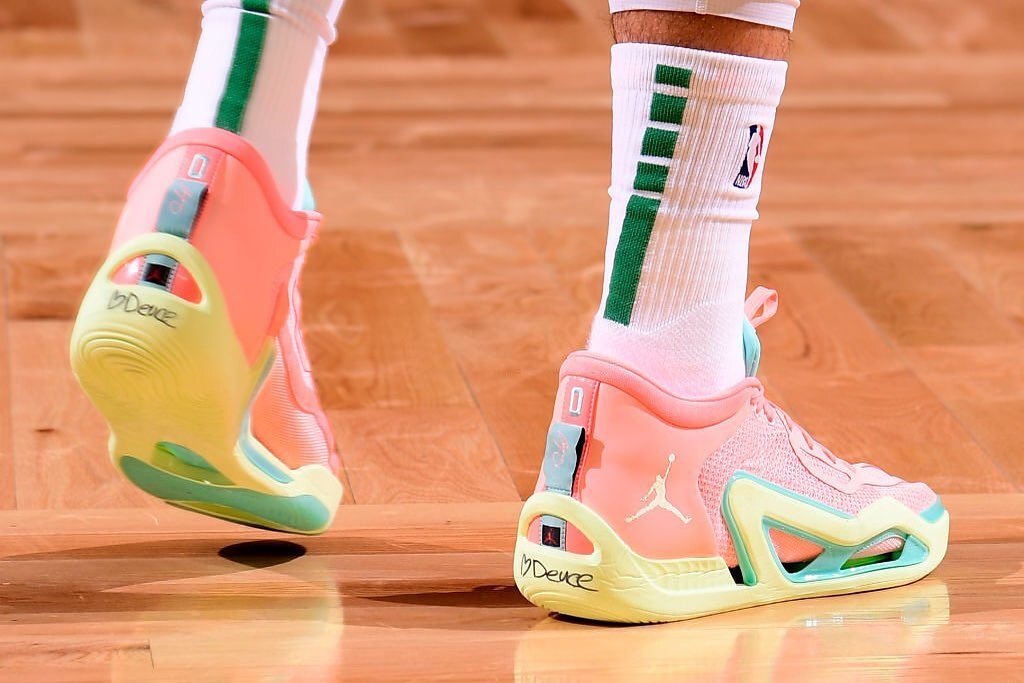 最后,让我们一起回顾下过去两天的 NBA 赛场球鞋上脚!