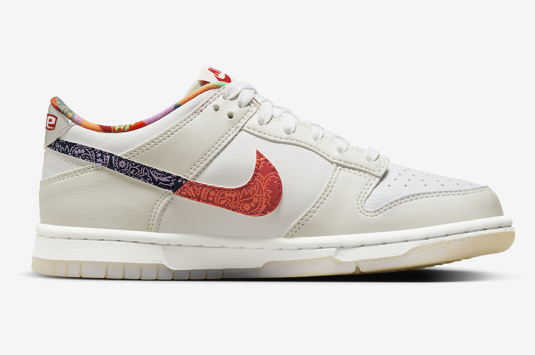 整双鞋采用米色和白色为主色,腰果花 Swoosh Logo 搭配,带来不俗的视觉效果。