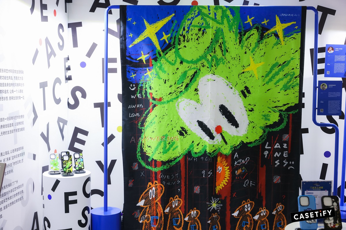 同时还在上海首发了 “奇想日常” 艺术展,以床单为基础进行创作,并带到了刚刚结束的 Sneaker Con 广州站中进行展览。